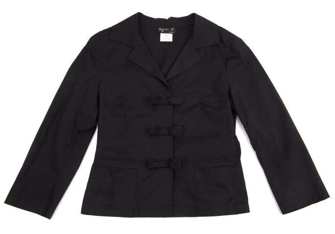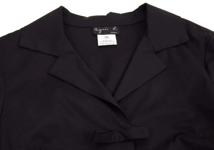 【600SALE】アニエスベーagnes b. リボンボタンストレッチコットンブラウス 【返品不可】 黒36