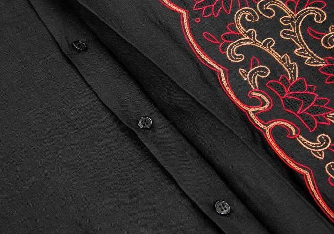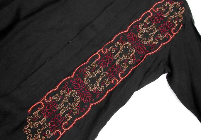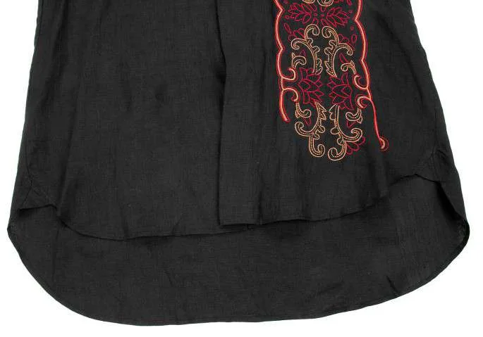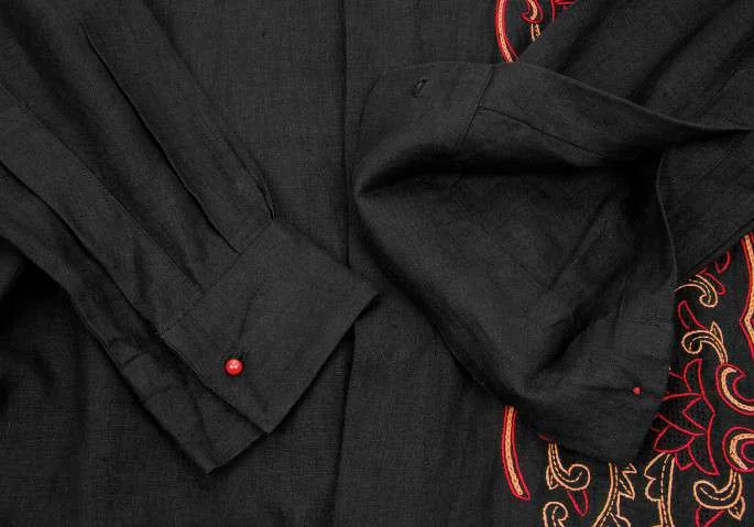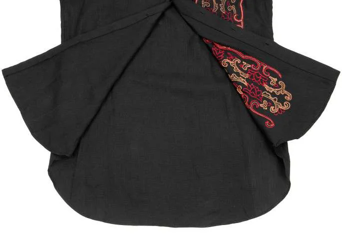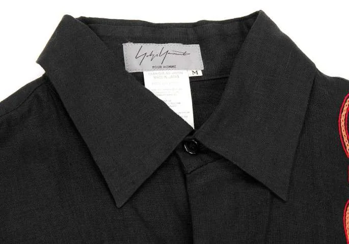 ヨウジヤマモトプールオム yohji yamamoto pour homme オリエンタル刺繍ロングリネンシャツ 黒M