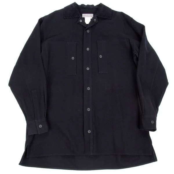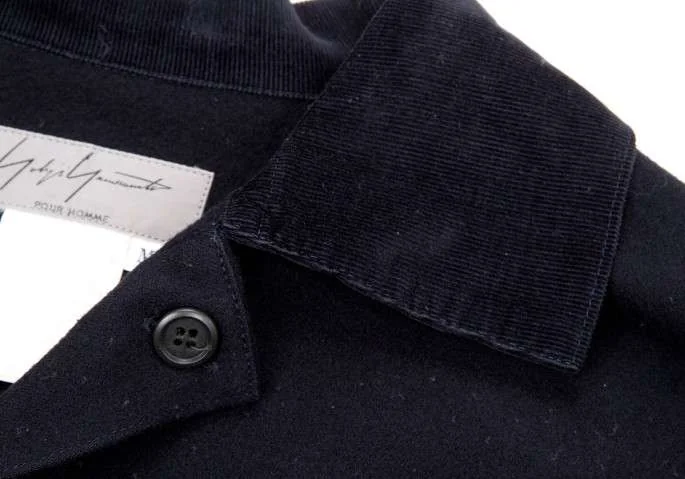 ヨウジヤマモトプールオム yohji yamamoto pour homme コーデュロイ衿フラノウールシャツジャケット 紺M