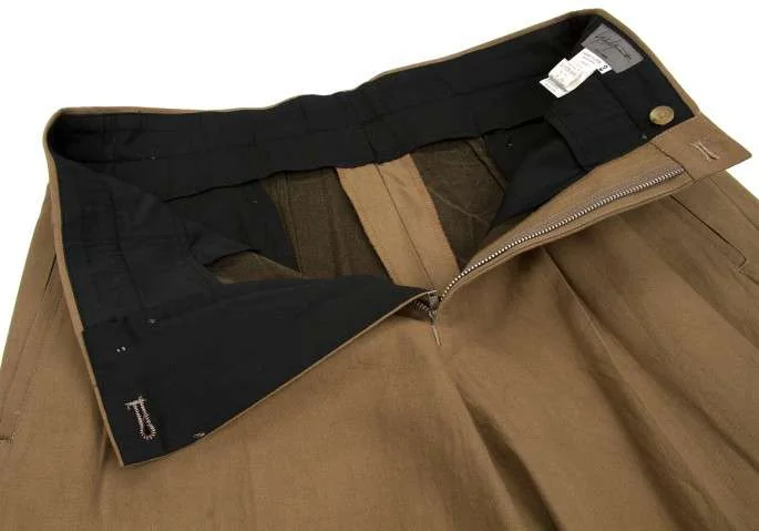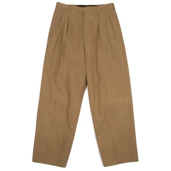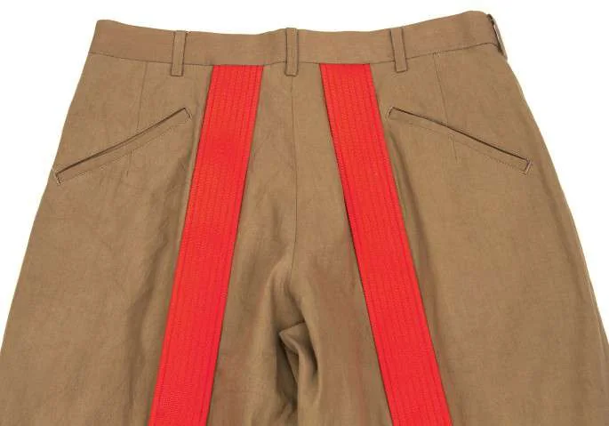 ヨウジヤマモト プール オム yohji yamamoto pour homme ベルトデザイン顔料染めコットンリネンパンツ 茶2