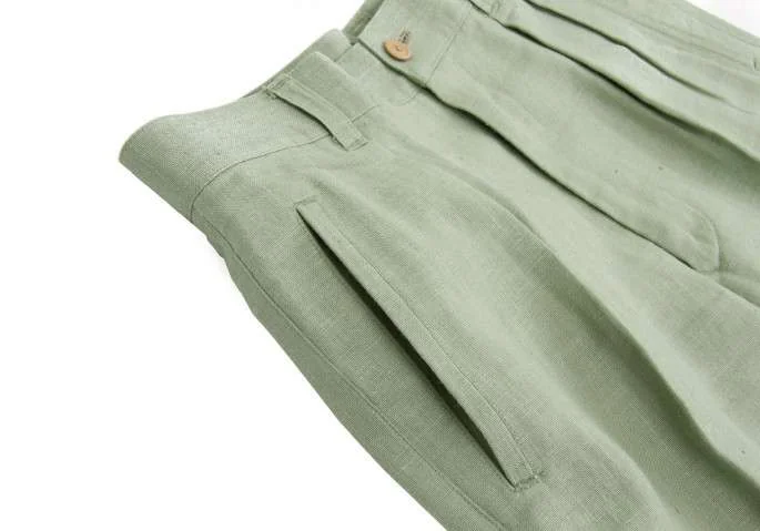 イッセイミヤケ メンISSEY MIYAKE MEN 2タックリネンネップパンツ 薄緑S