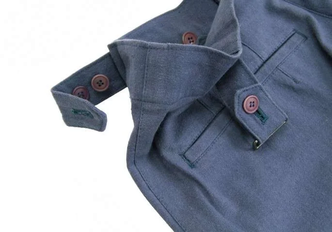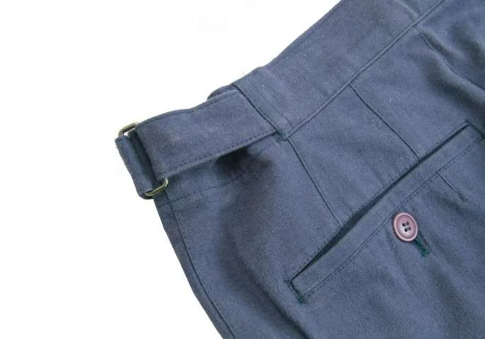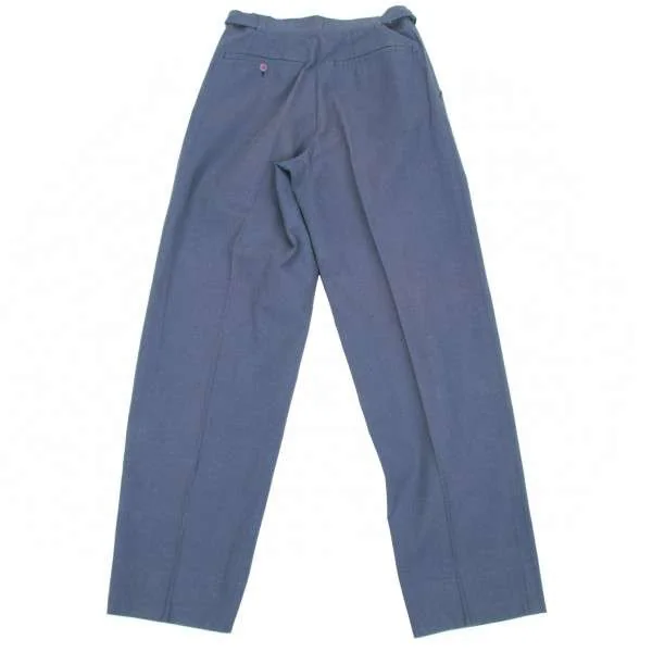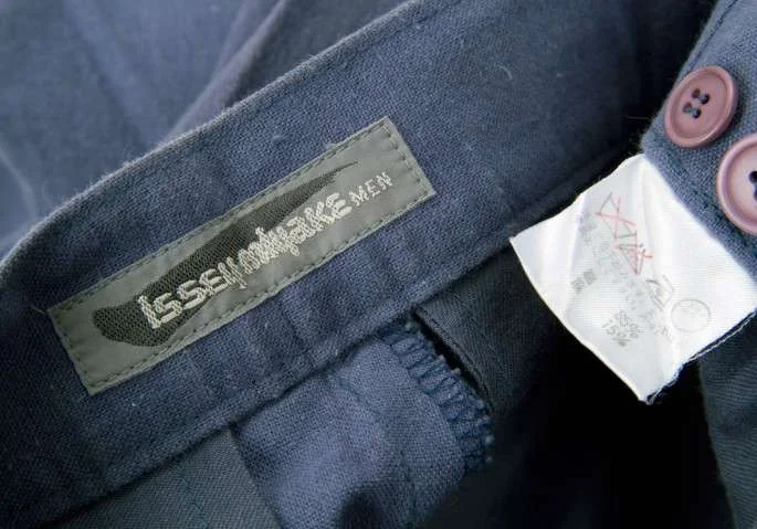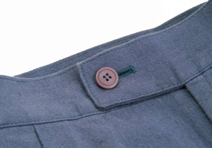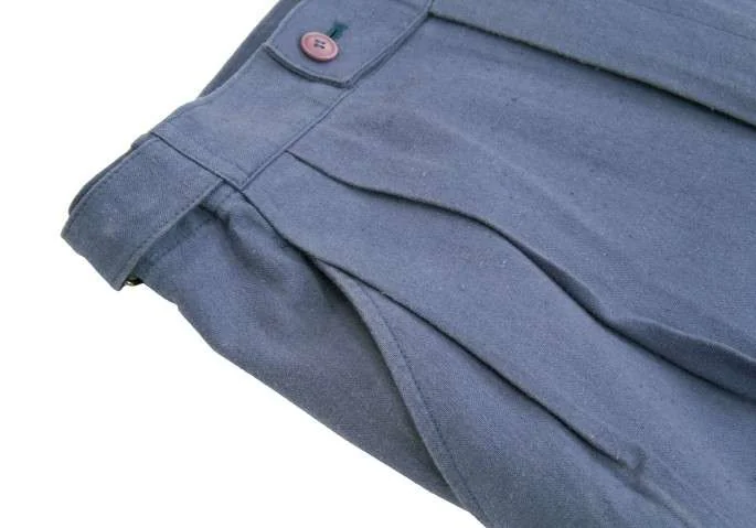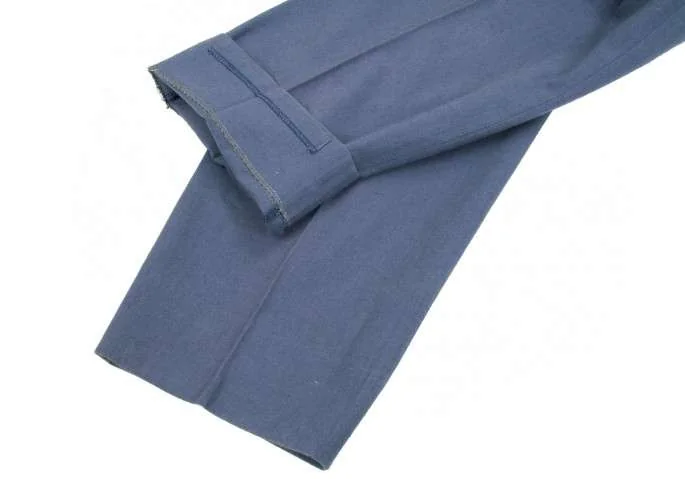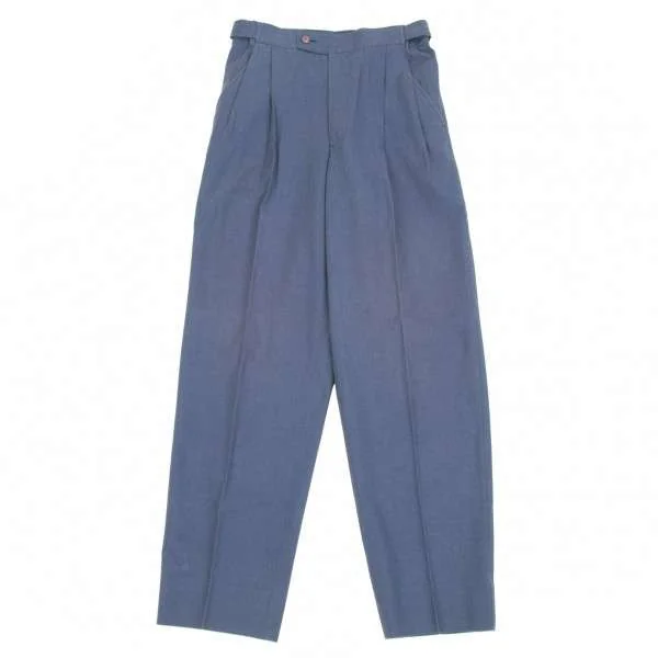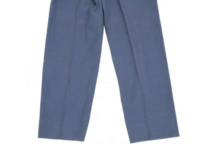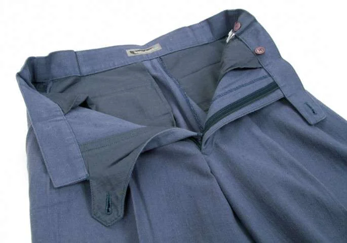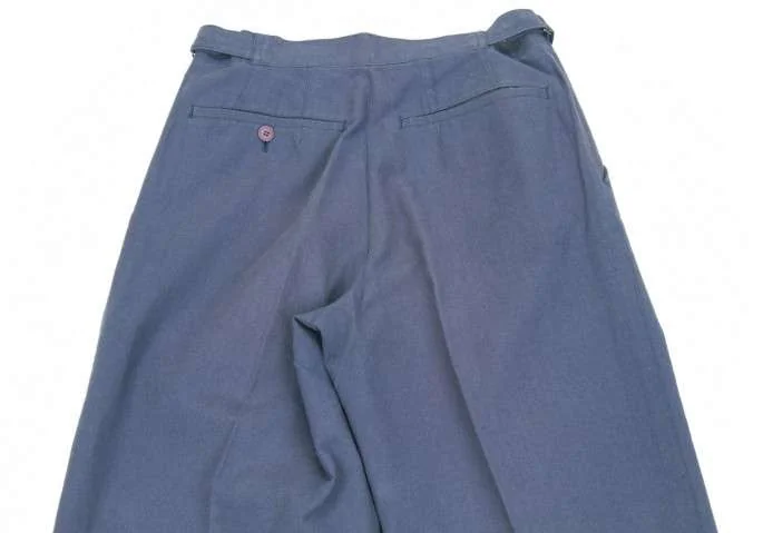 イッセイミヤケ メンISSEY MIYAKE MEN 2タックコットンリネンサイドベルト切替デザインパンツ 青S