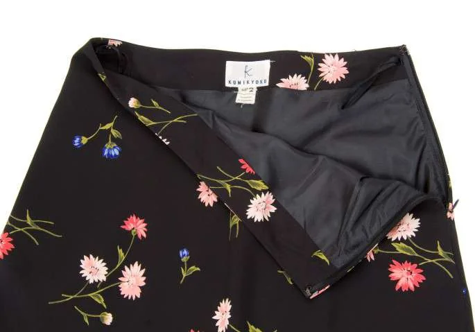 【SALE】組曲KUMIKYOKU フラワープリントスカート 黒2