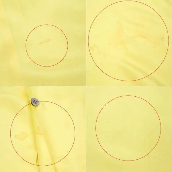 襟裏に汚れ、全体的にシミ、汚れあり(写真参照)。クリーニング済み