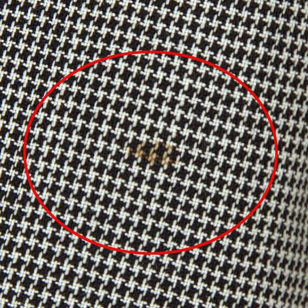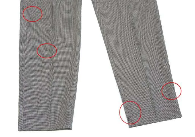 ジャケット:首元裏地に破れあり(写真参照)。その他は目立ったシミ、汚れ、ほつれ等ありません。 パンツ:前身頃にシミ箇所あり(写真参照)。