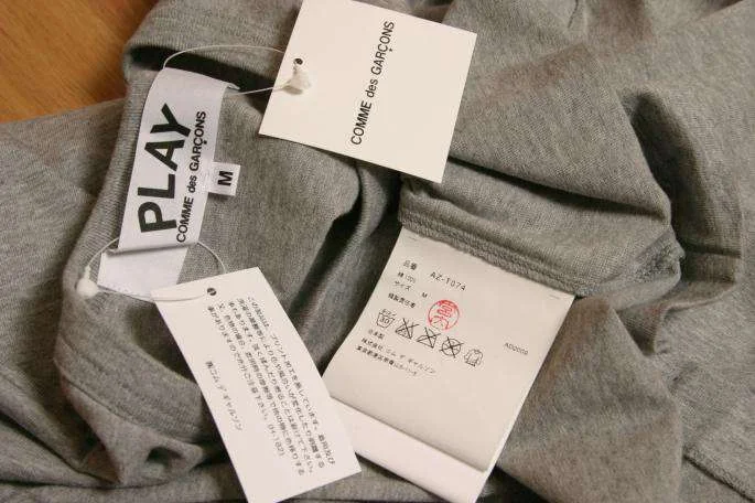 新品!プレイ コムデギャルソンPLAY 左袖ハート黒Tシャツ グレーM