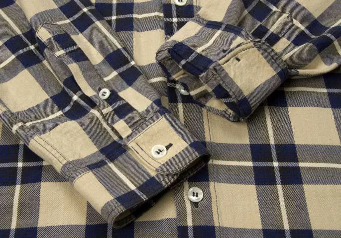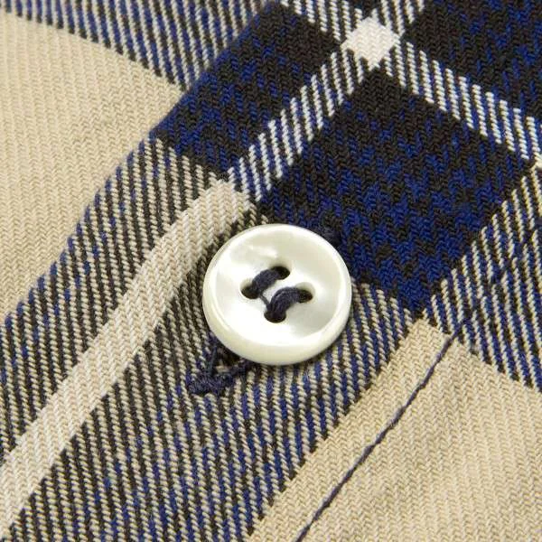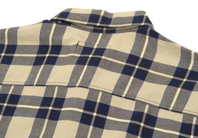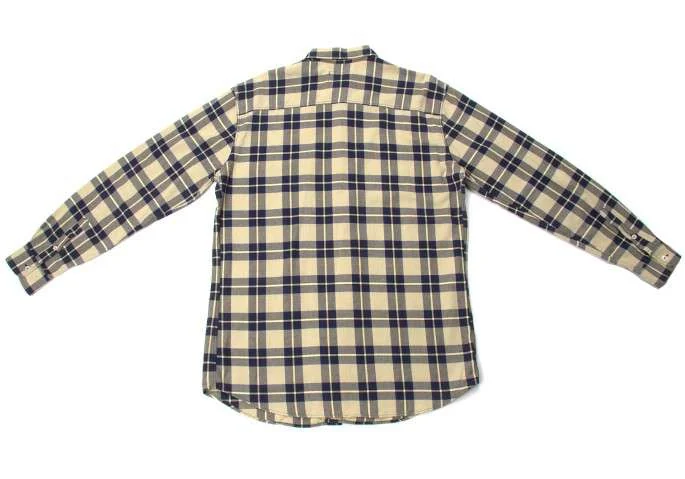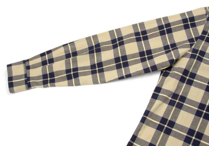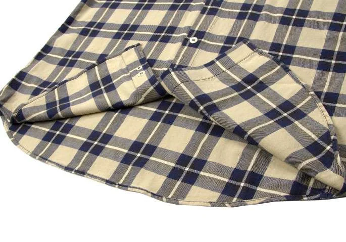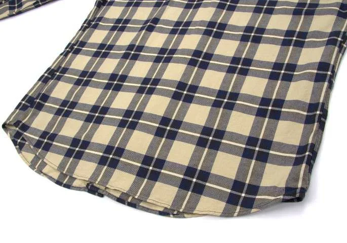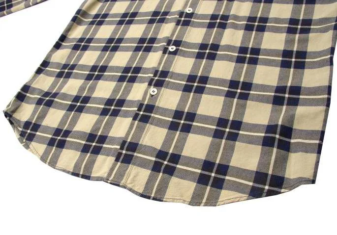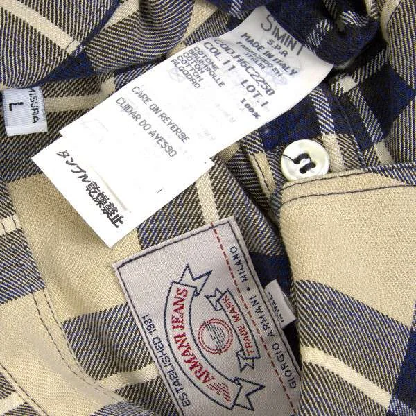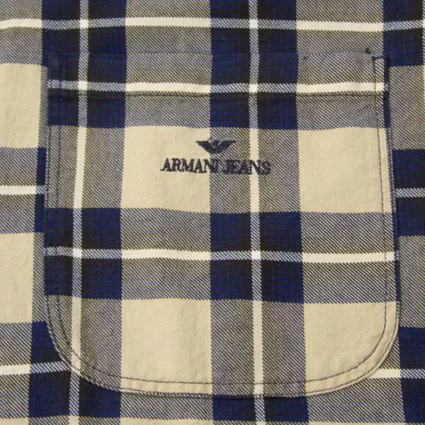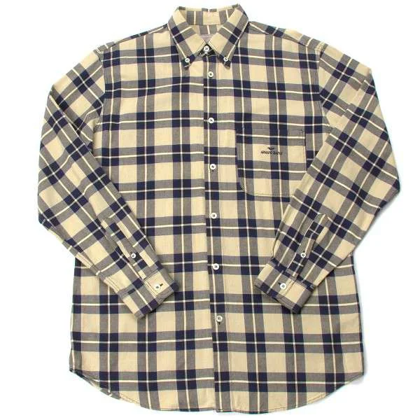 アルマーニ ジーンズARMANI JEANS チェック柄長袖コットンシャツ ベージュ紺L