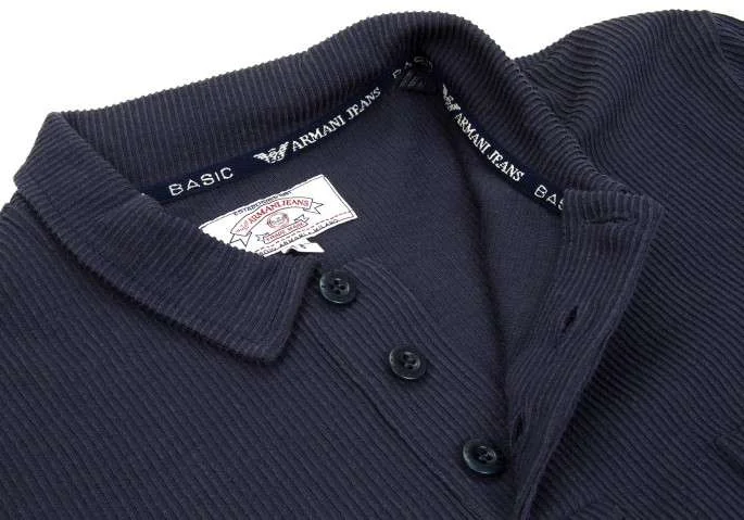 アルマーニ ジーンズARMANI JEANS リブ半袖ポロシャツ 紺L