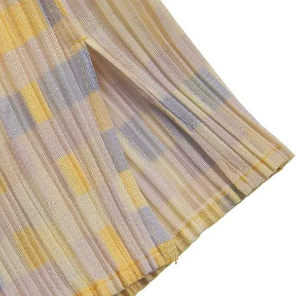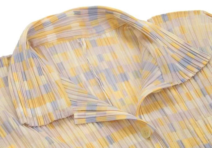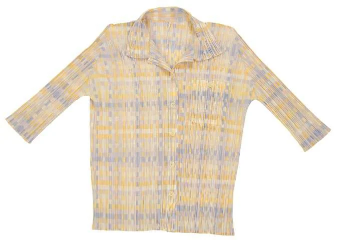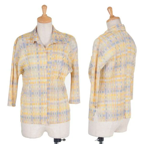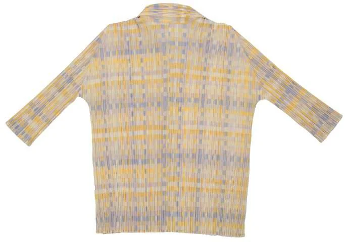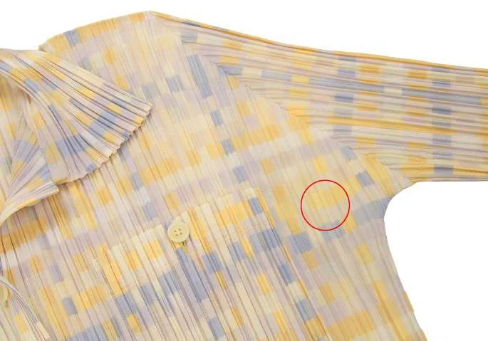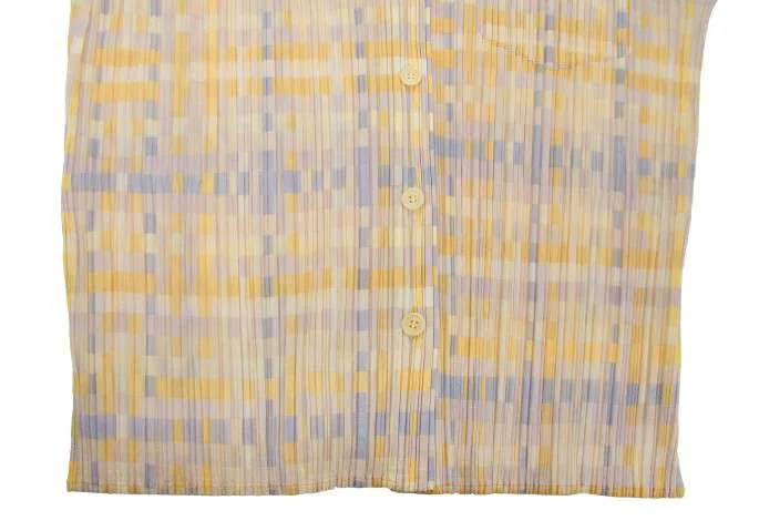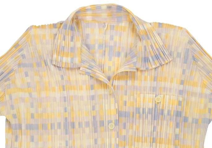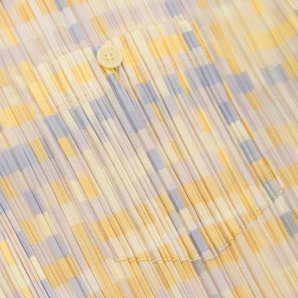 プリーツプリーズPLEATS PLEASE カラフルブロックチェック5分袖シャツ ベージュ3