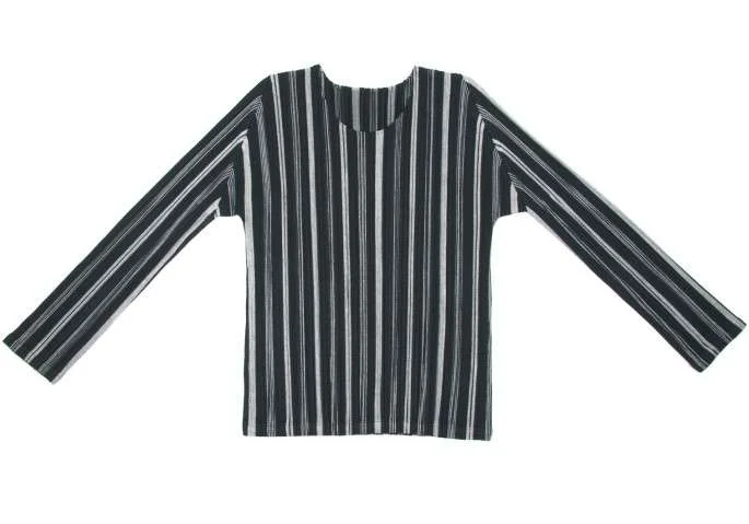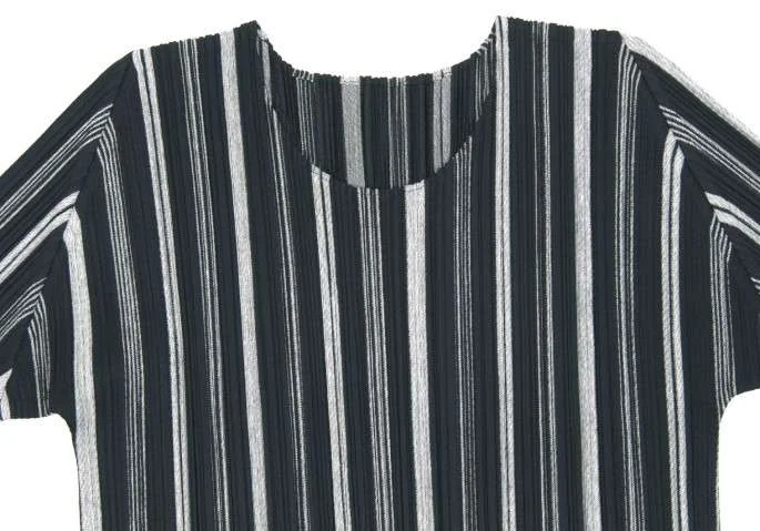 プリーツプリーズPLEATS PLEASE ストライプ織りプリーツカットソー 黒グレー4