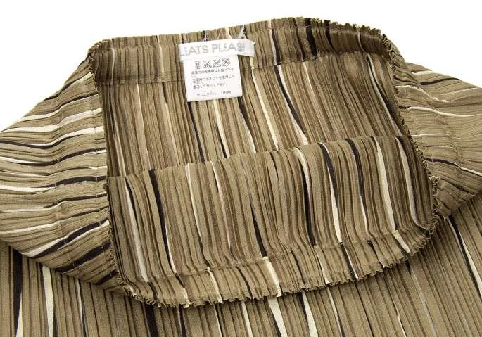 プリーツプリーズPLEATS PLEASE ストライププリントデザインスカート ゴールド3