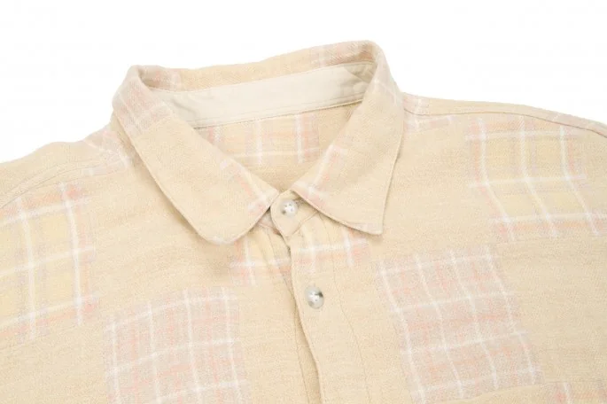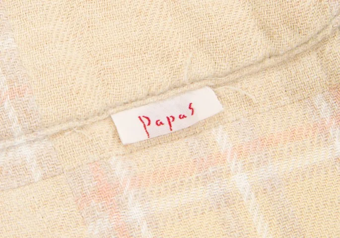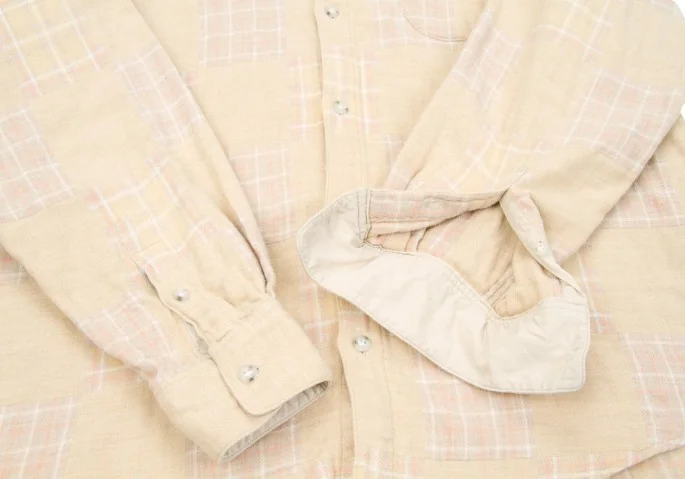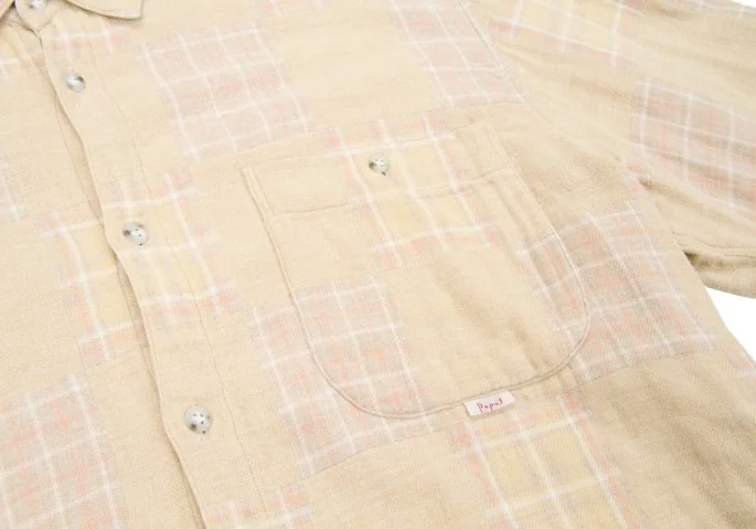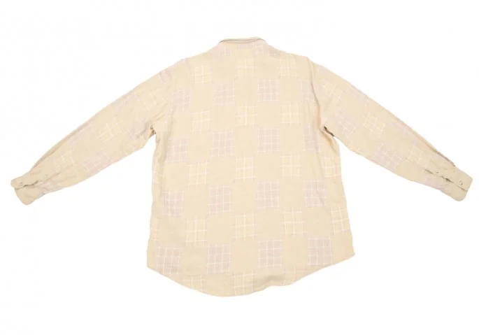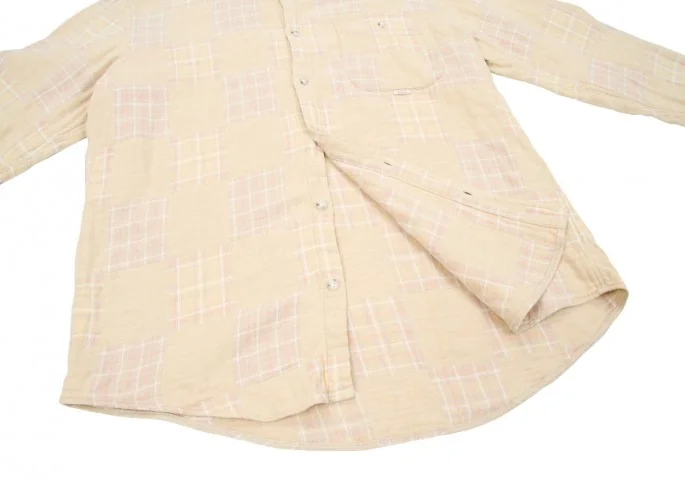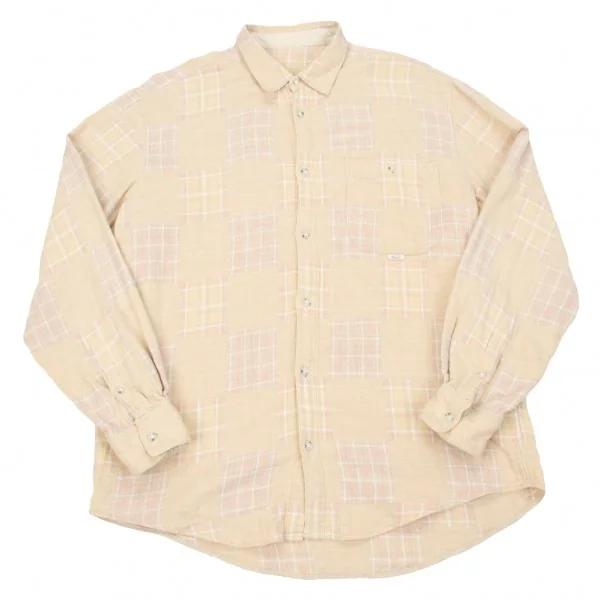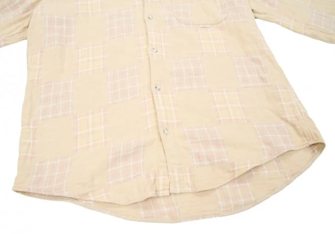 【SALE】パパスPapas チェックパッチワーク風ネルシャツ ベージュ ベージュオレンジ白L