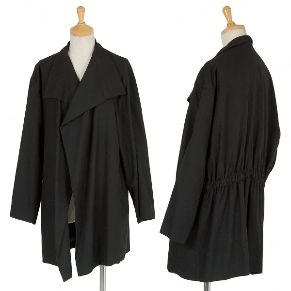 【SALE】プランテーションPlantation ウールナイロンバックギャザーボタンレスジャケット 黒M