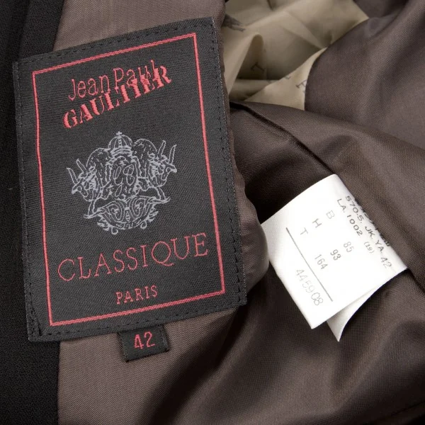ジャンポールゴルチエ クラシックJean Paul GAULTIER CLASSIQUE ストライプ織りデザインダブルジャケット 黒42