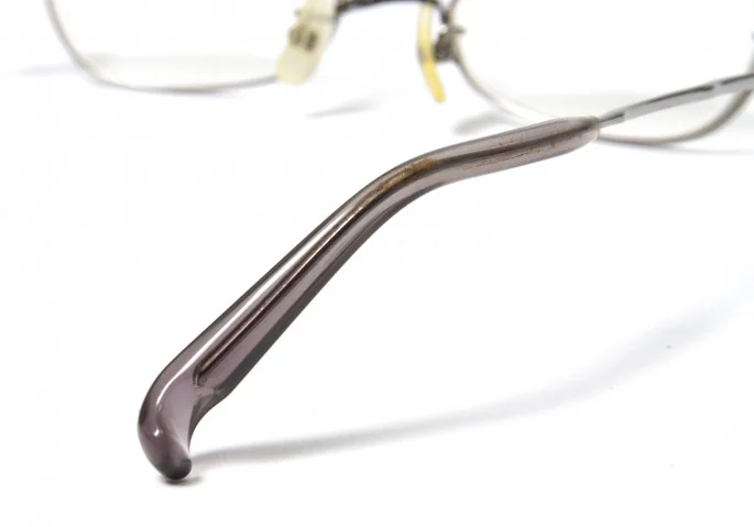 鼻パット使用跡有り、耳掛け内部に汚れがありますが、フレームは目立ったキズ無く綺麗な状態です。 お手数をおかけしますが、度入りレンズの交換はお近くの眼鏡店等でお買い求めください。 他眼鏡店にてレンズの入れ替え、調整等に生じた不具合、破損については一切の責任を負いかねますので予めご了承下さい。
