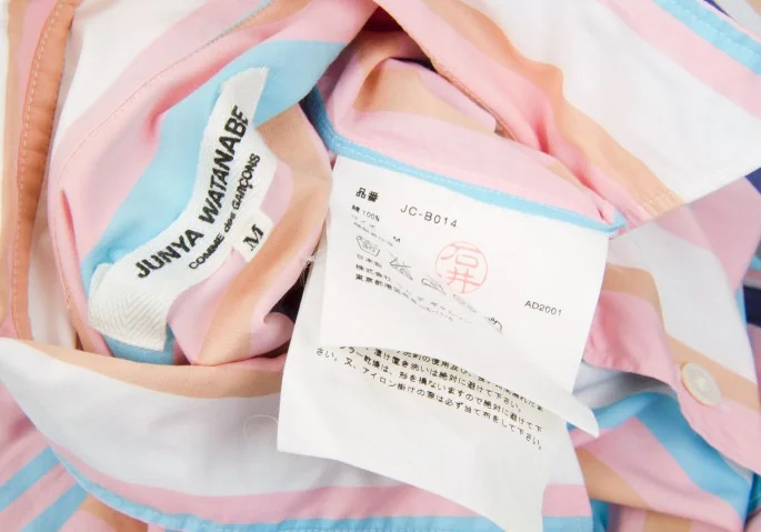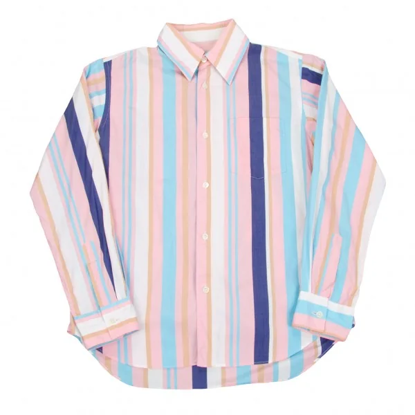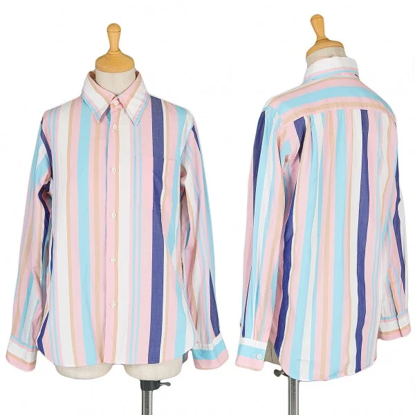 【SALE】ジュンヤワタナベ コムデギャルソンJUNYA WATANABE COMME des GARCONSカラフルストライプ長袖シャツ 白ピンク青他M