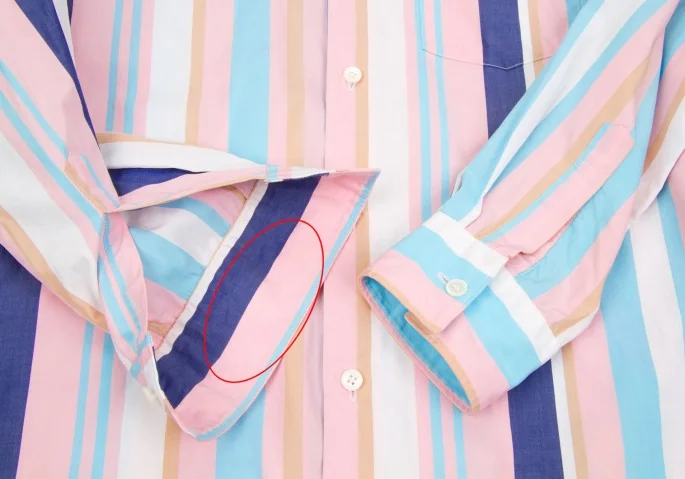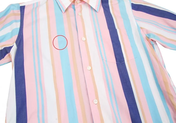 襟裏に薄汚れあり。右袖口裏に薄汚れ、右前身頃に変色あり(写真参照)。クリーニング済み
