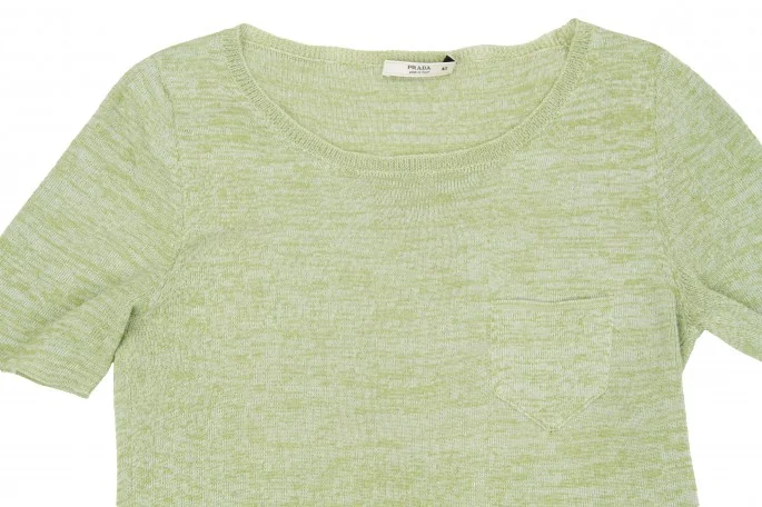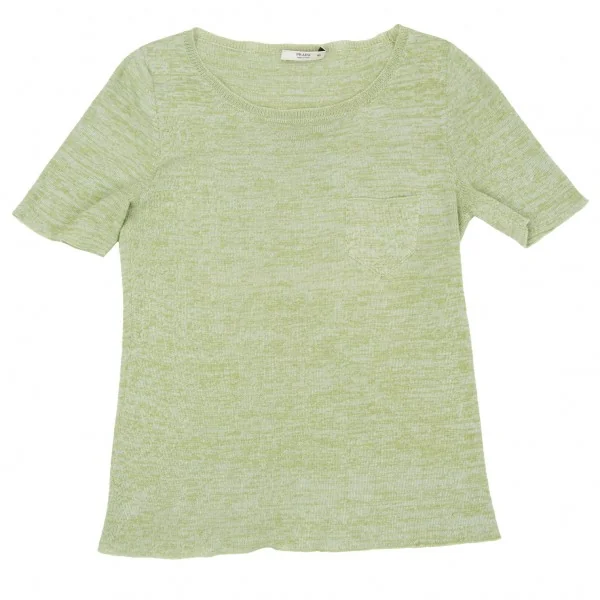 【SALE】プラダPRADA ポケット半袖ニットカットソー 杢グリーン40