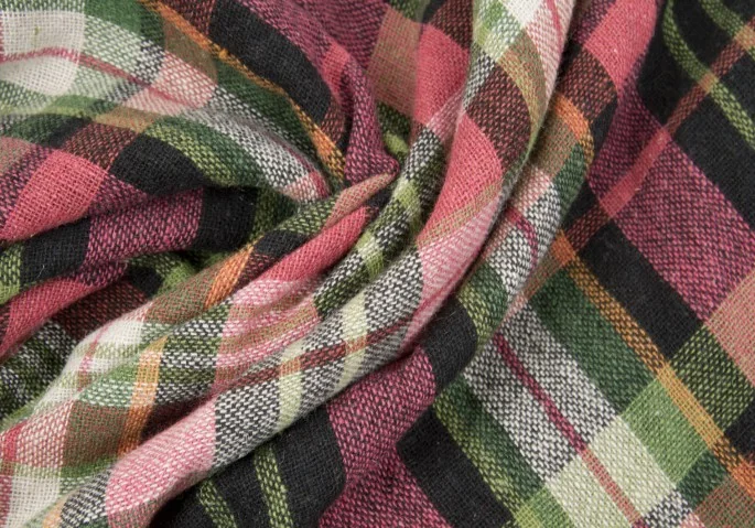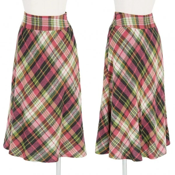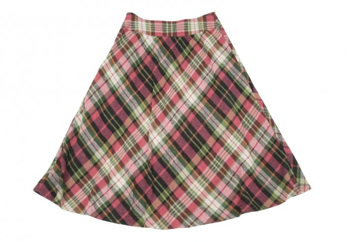 ホコモモラ Jocomomola バイアスチェックウールレーヨンスカート 赤黒緑42