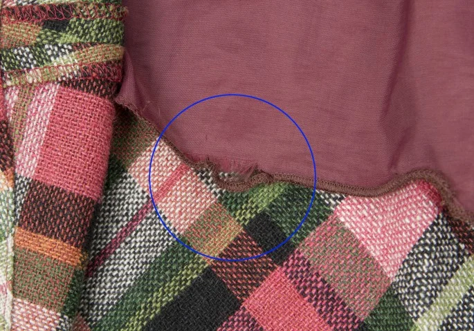 裏地裾のステッチにほつれがあります(画像参照)。その他は目立ったシミ、汚れ等なくいい状態です。