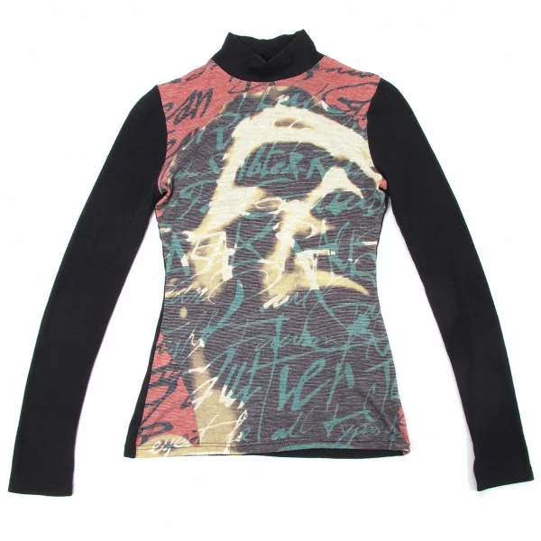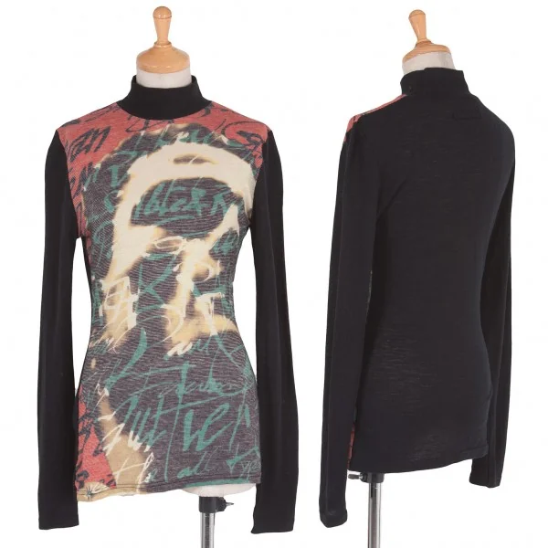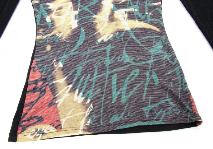 【SALE】ジャンポールゴルチエ クラシックJean Paul GAULTIER CLASSIQUE ウール混合英字編みニットカットソー 黒マルチ40
