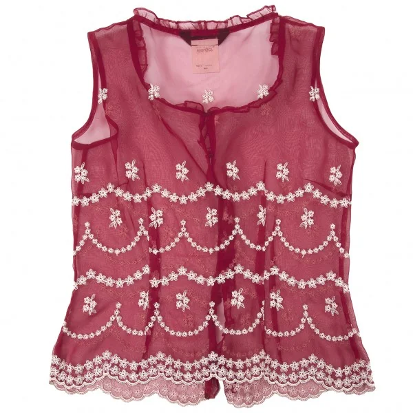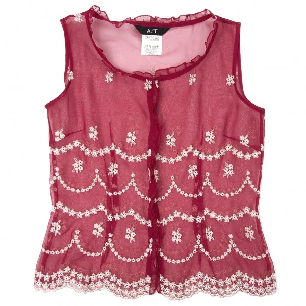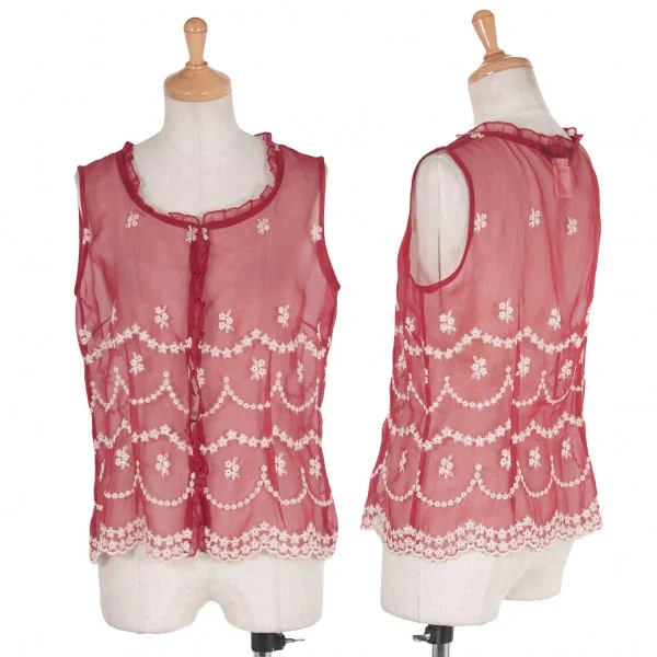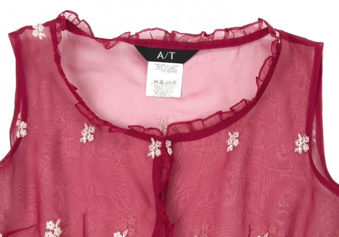 【SALE】アツロウタヤマA/T 花刺繍シースルーベスト ワインオフ白M位