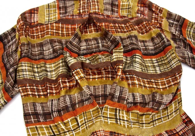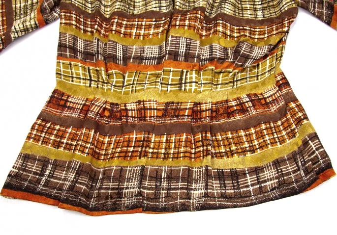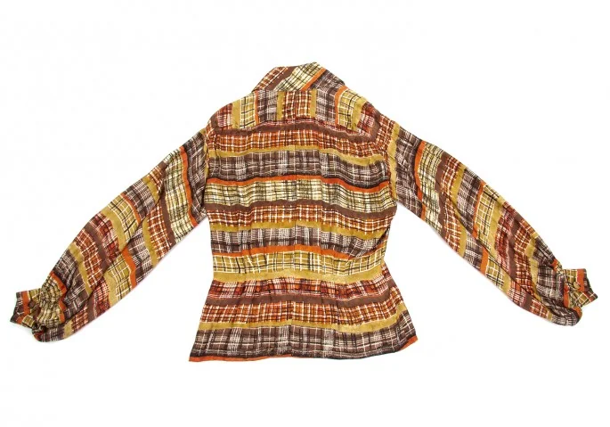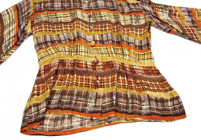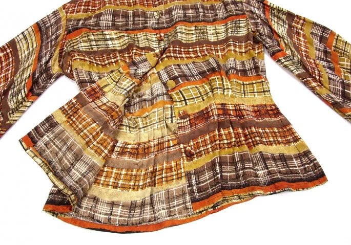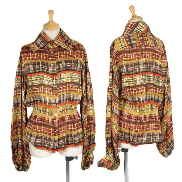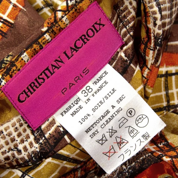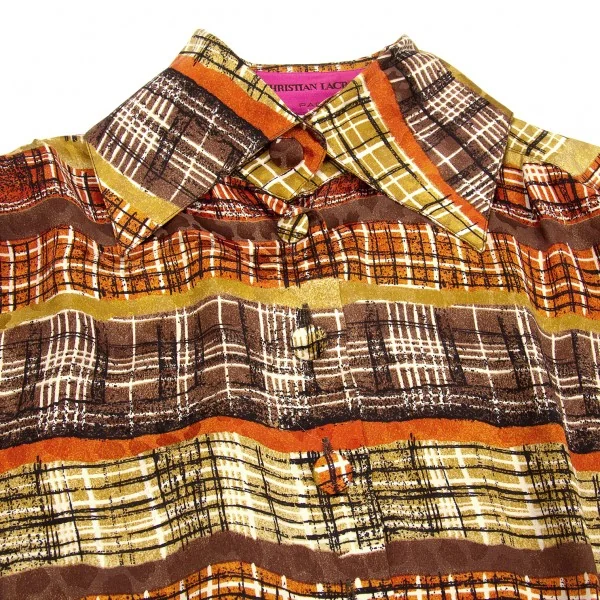クリスチャン ラクロワChristian Lacroix シルク柄織り長袖シャツ 茶オレンジ38