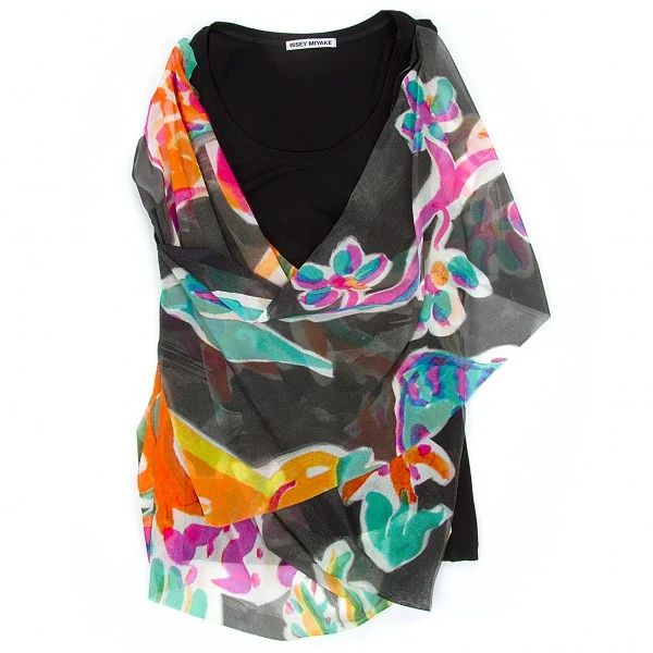 【SALE】イッセイミヤケISSEY MIYAKE パワーネットレイヤードデザイントップス 黒マルチ2