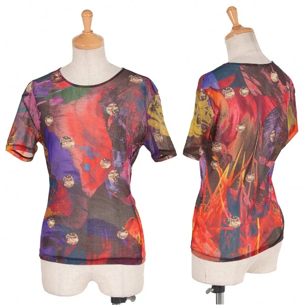 【SALE】イッセイミヤケISSEY MIYAKE パワーネットマルチカラー転写トップス 紫マルチ2