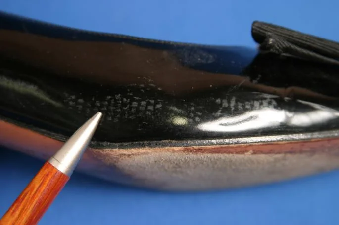 右足側面に薄汚れ(写真参照)がありますがそこ以外は、目立ったシミ、汚れなくいい状態です。