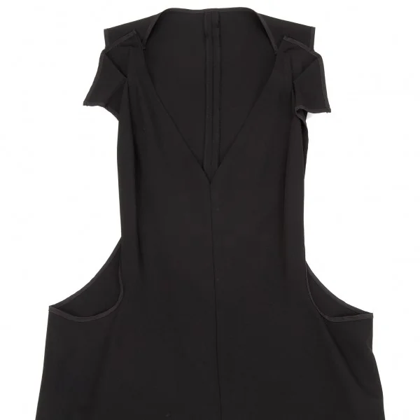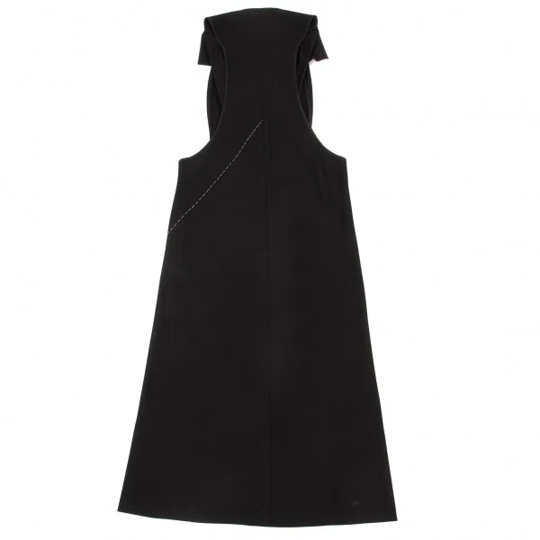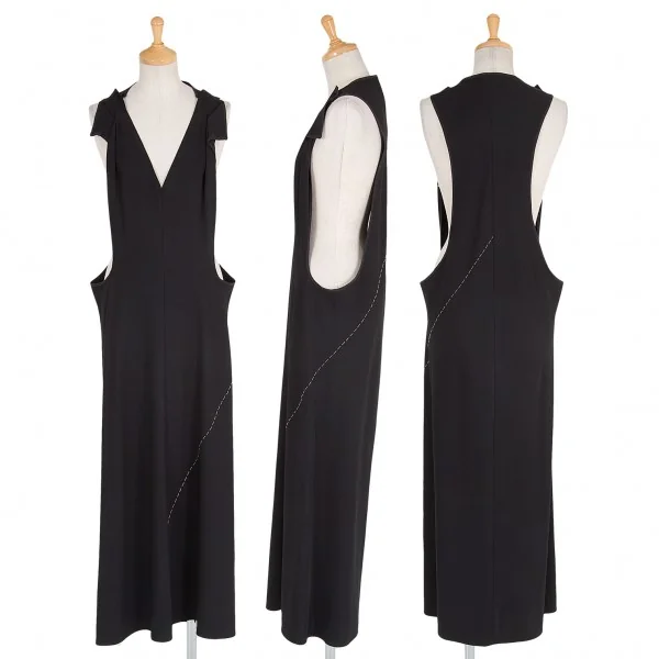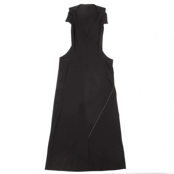ヨウジヤマモトファムYohji Yamamoto FEMME ウールギャバステッチデザインロングワンピース 黒1