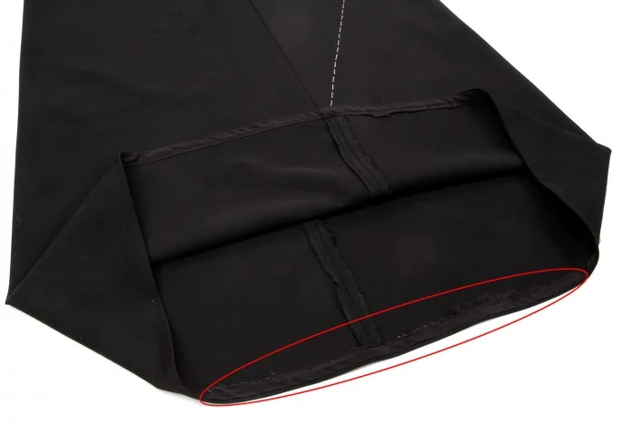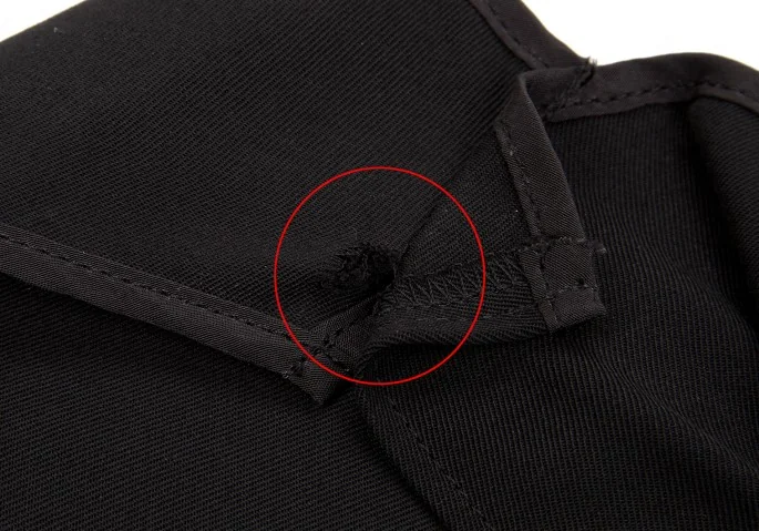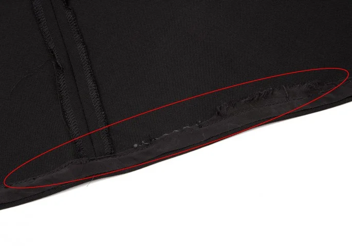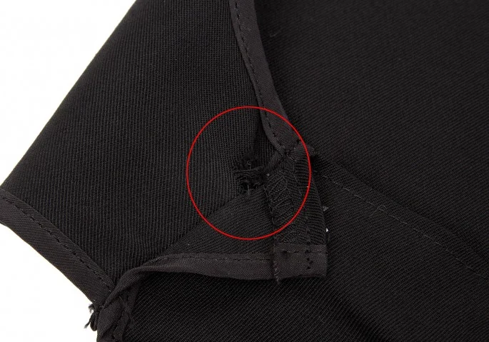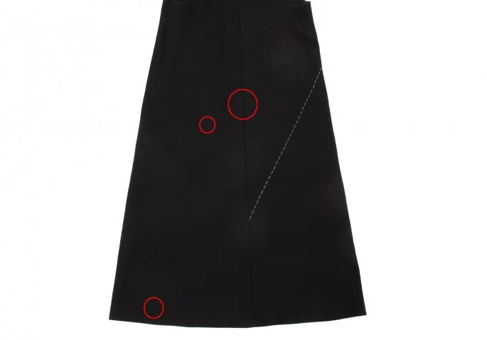 両肩ショルダー部分に破れあり。前身頃にシミあり。裾裏の始末にほつれあり(写真参照)。