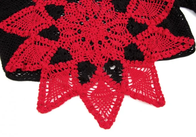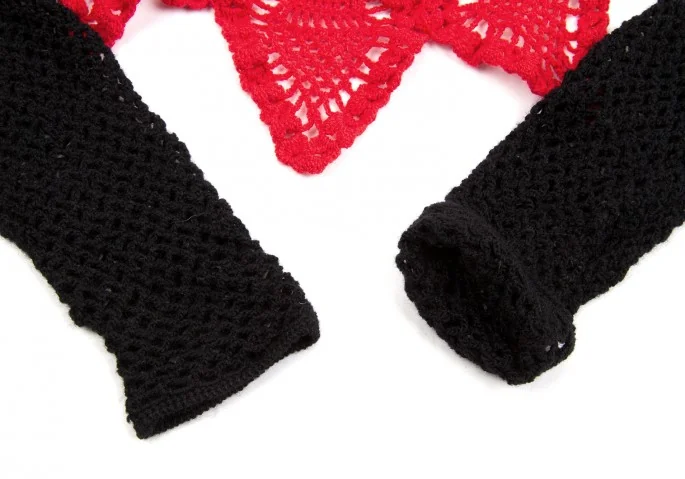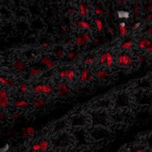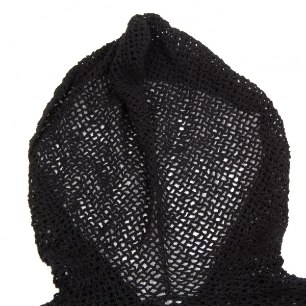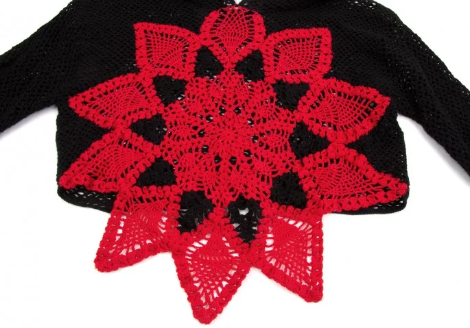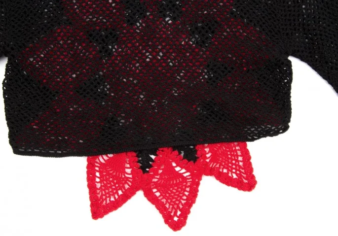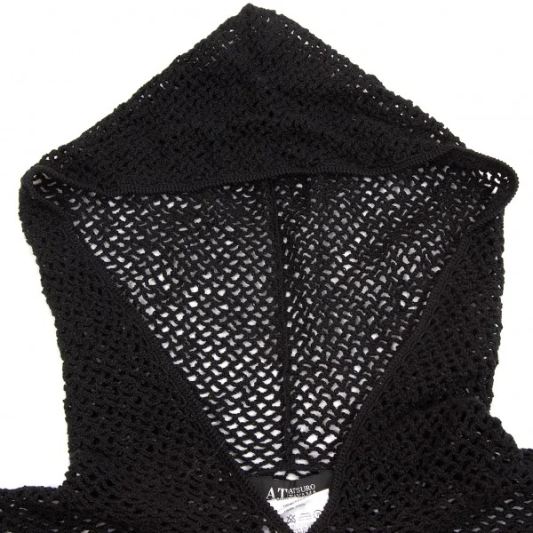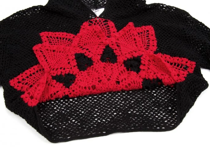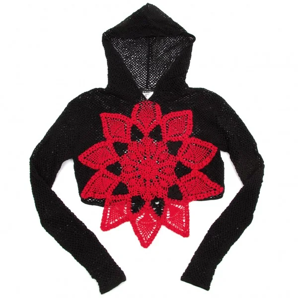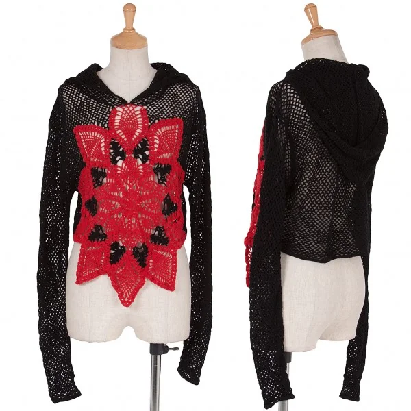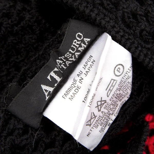 アツロウタヤマA/T ウールカギ編みデザインフードプルオーバー 黒赤M位