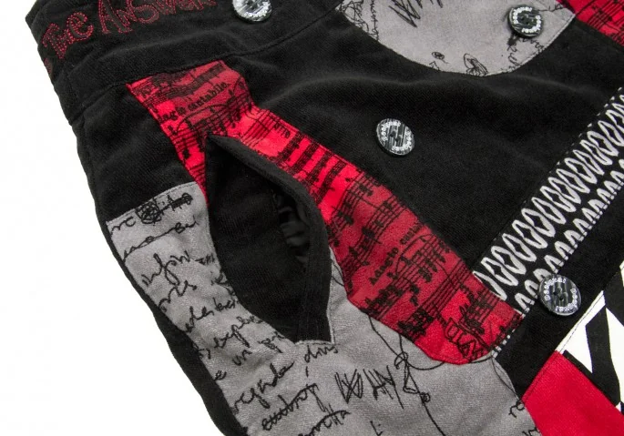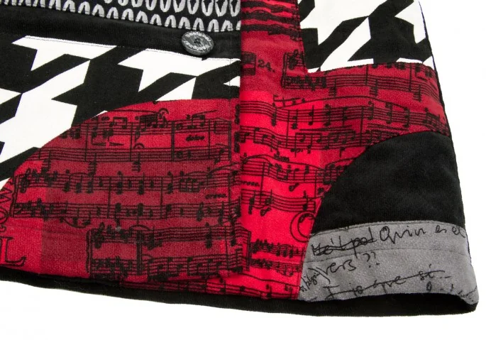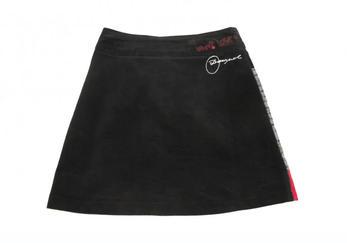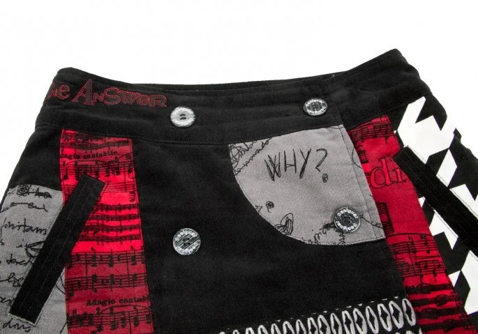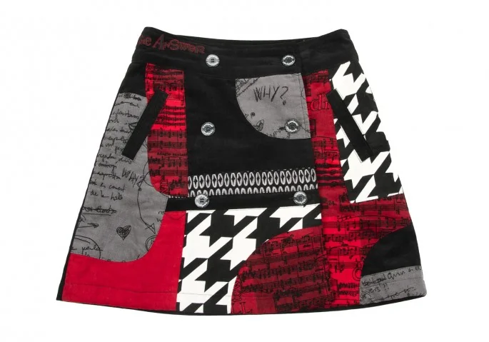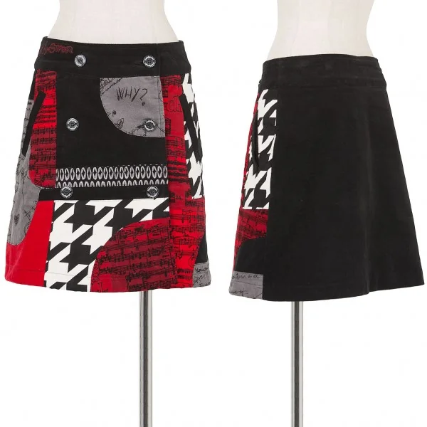 デシグアルDesigual コーデュロイプリントパッチワークデザインスカート 黒赤36