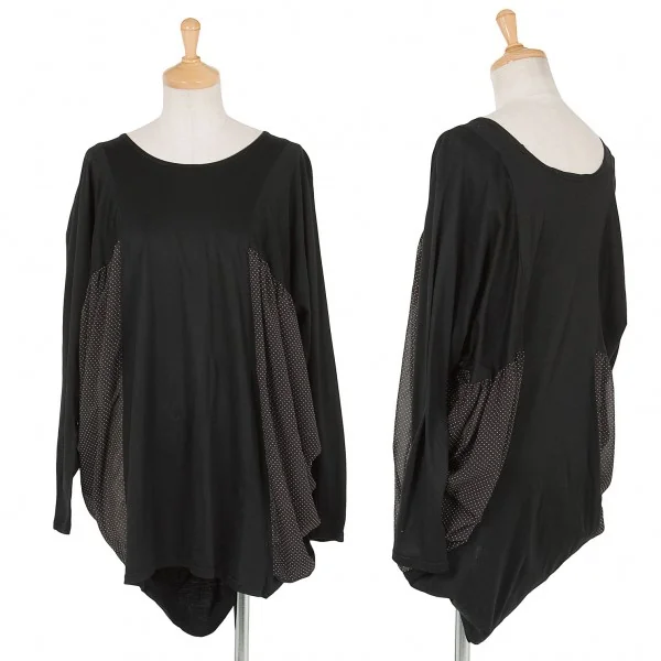 【SALE】リミフゥLIMI feu シースルードット切替ドルマンスリーブ長袖カットソー 黒S