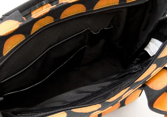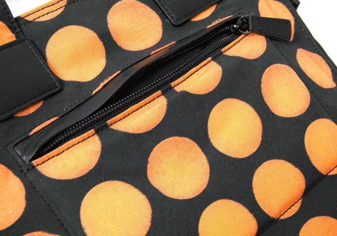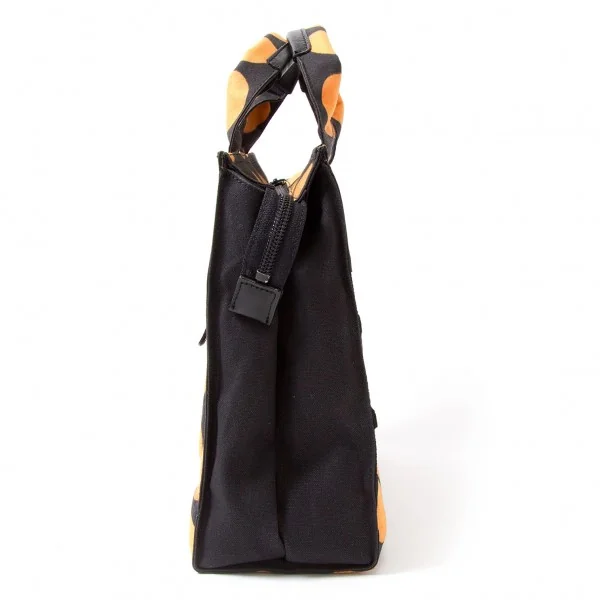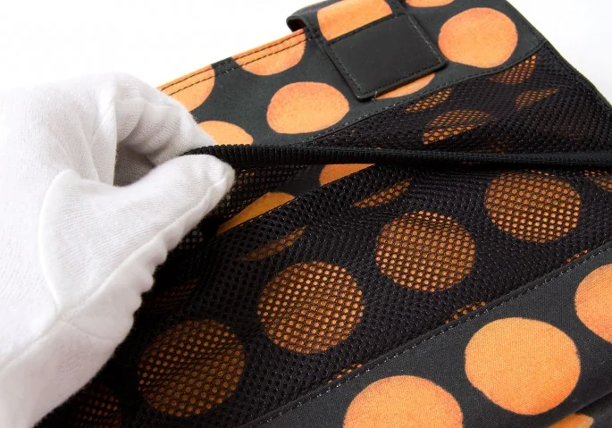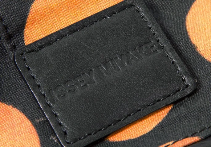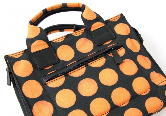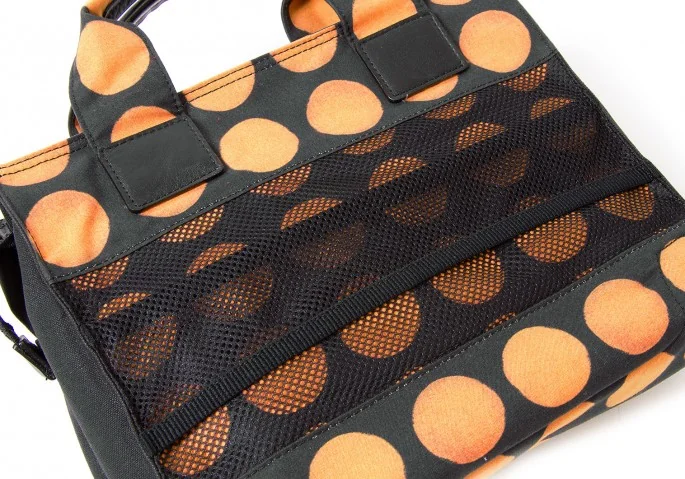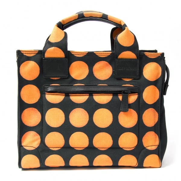 イッセイミヤケ ISSEY MIYAKE ドットデザインメッシュ切替ミニハンドバッグ 黒オレンジ26×22