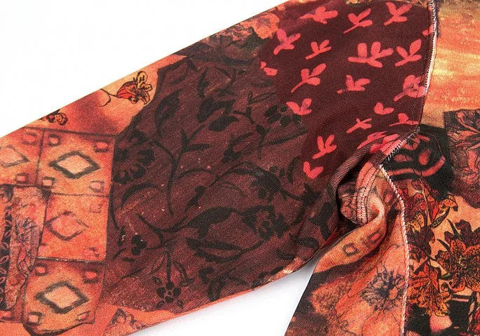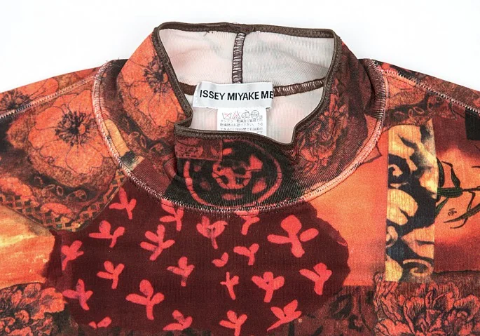 【SALE】イッセイミヤケ メンISSEY MIYAKEMEN ハイネックプリントデザインキュプラカットソー オレンジM