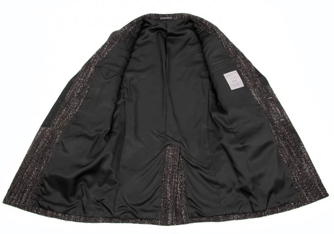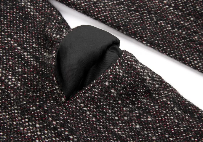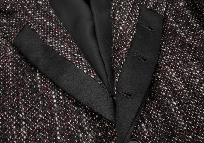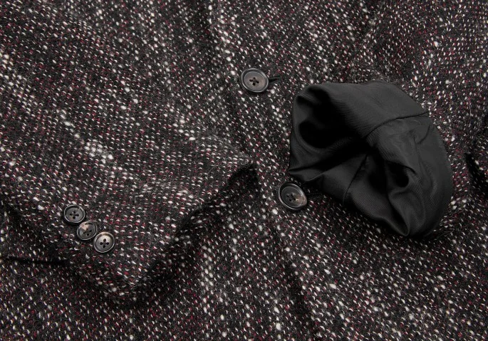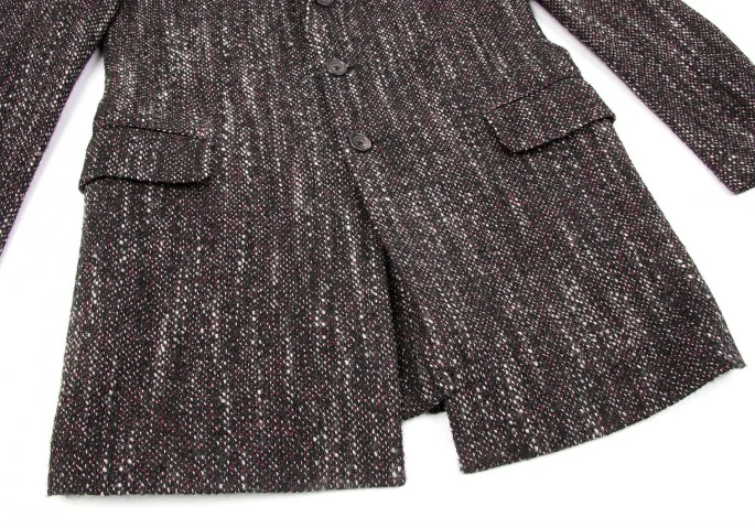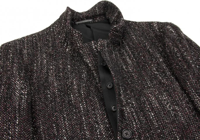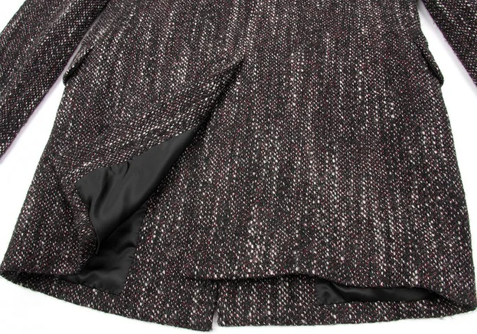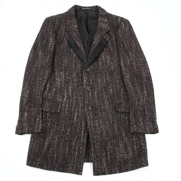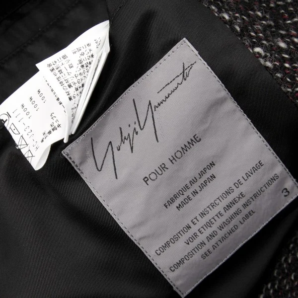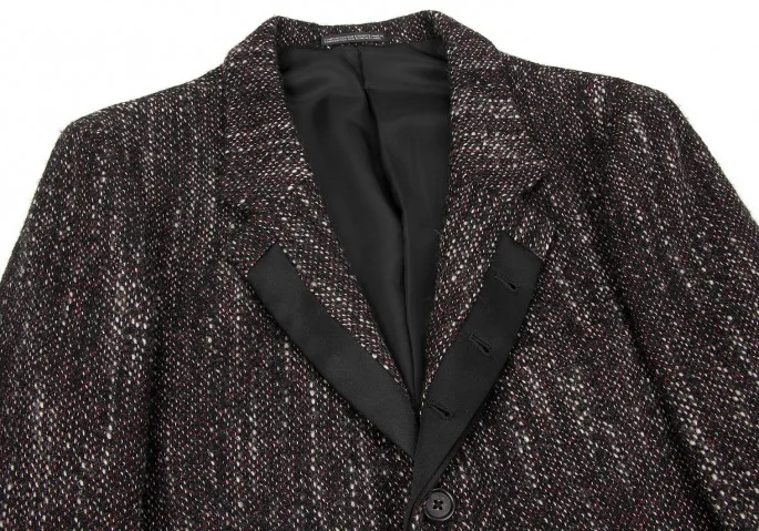 ヨウジヤマモトプールオムyohji yamamoto pour homme シルクラペル切替ツィードロングジャケット 黒赤白3