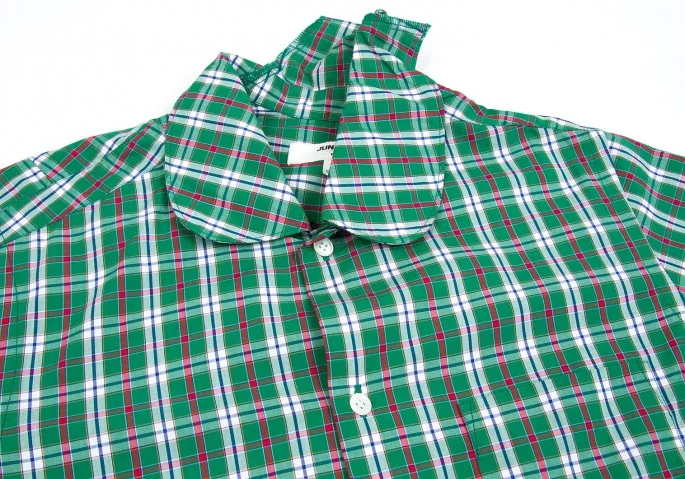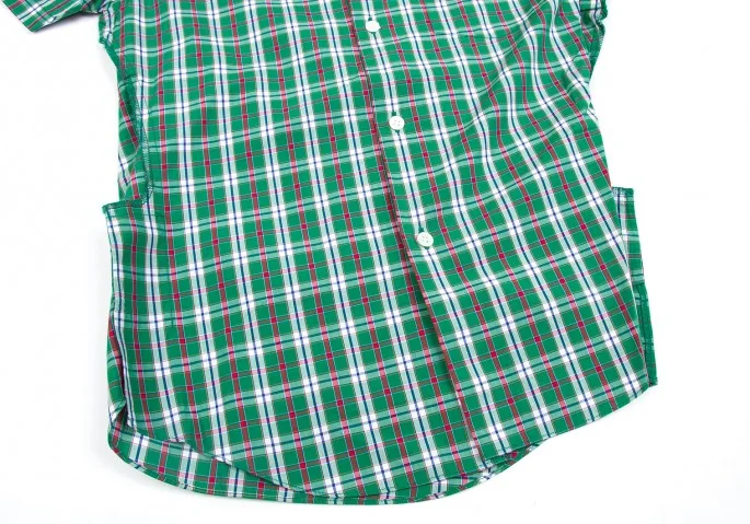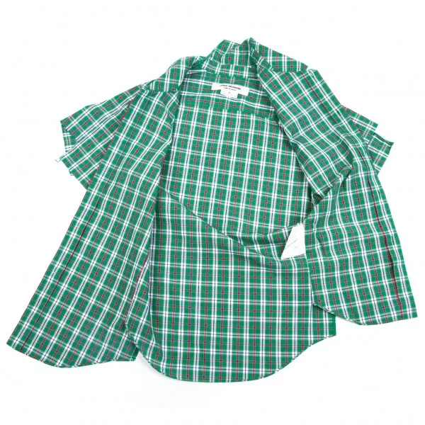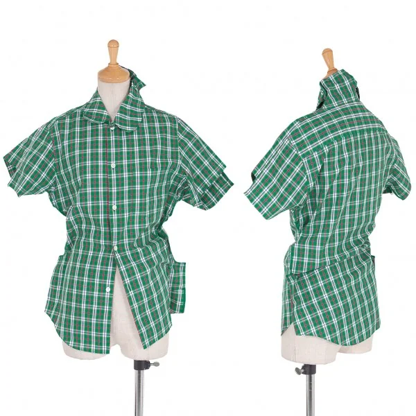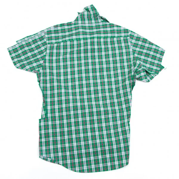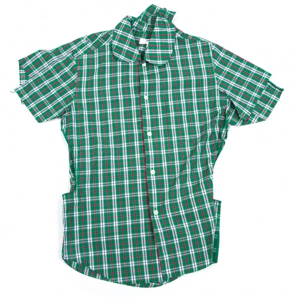 【SALE】ジュンヤワタナベ コムデギャルソンJUNYA WATANABE COMME des GARCONS カッティングデザインチェック半袖シャツ 緑白赤紺S