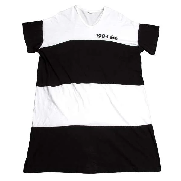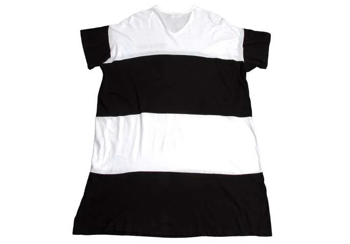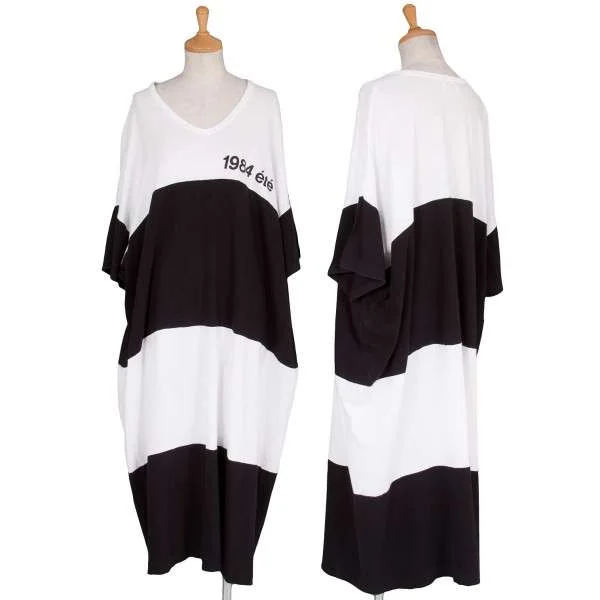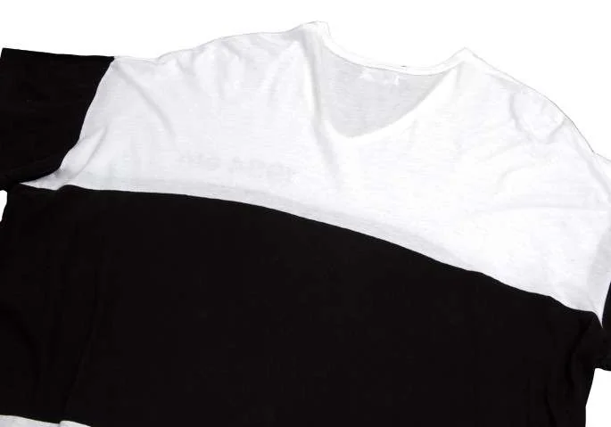 ローブドシャンブル コムデギャルソンrobe de chambre COMME des GARCONS ボーダーVネックオーバーサイズTシャツ 白黒フリー