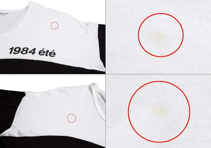 着用感あり。前身頃に薄シミあり(写真参照)。その他は目立った汚れ、ほつれ等なくいい状態です。クリーニング済み