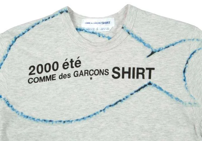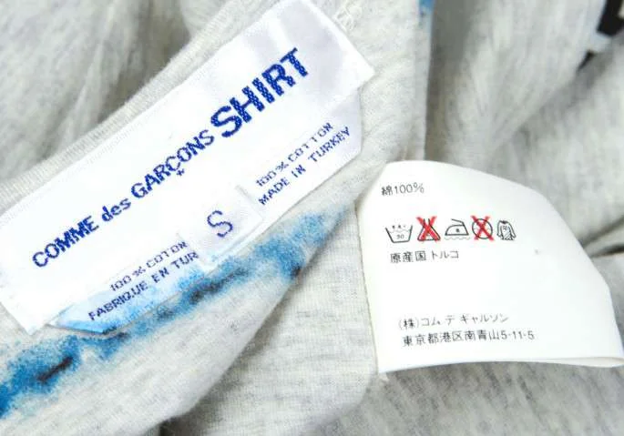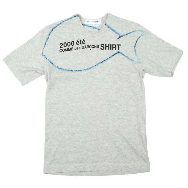 コムデギャルソンシャツCOMME des GARCONS HOMME SHIRT プリント霜降りTシャツ グレー青S