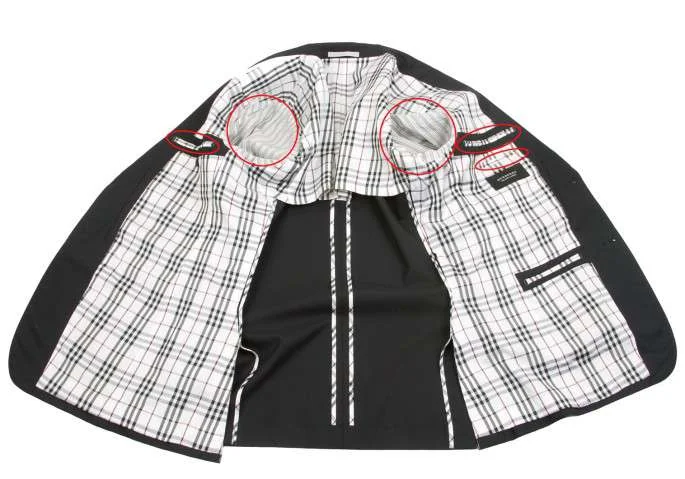 袖裏薄汚れ、裏地ポケット口、脇下汚れがあります。その他に目立ったダメージはありません。