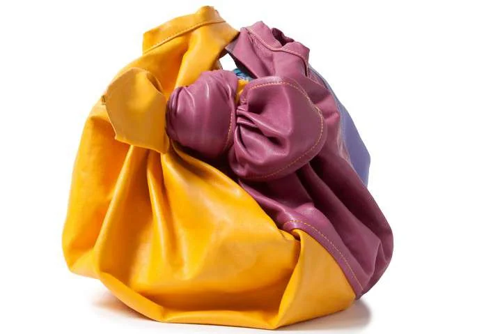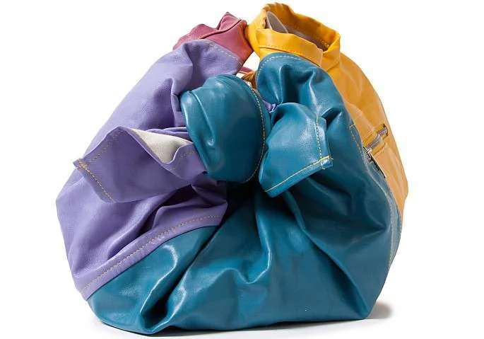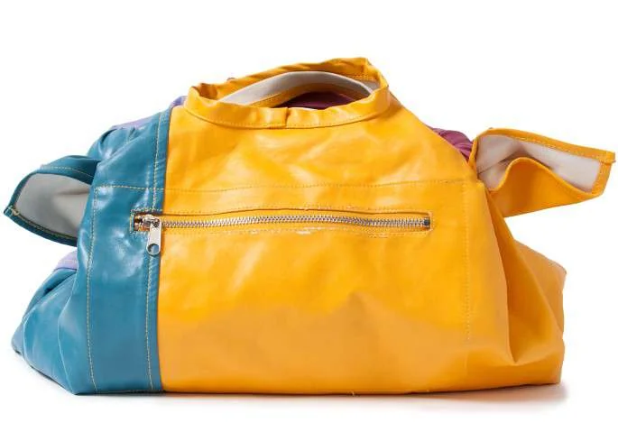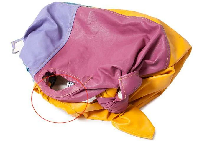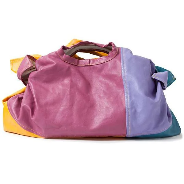 コムコム コムデギャルソンCOMME des GARCONS パッチワークフェイクレザーハンドバッグ 黄紫青