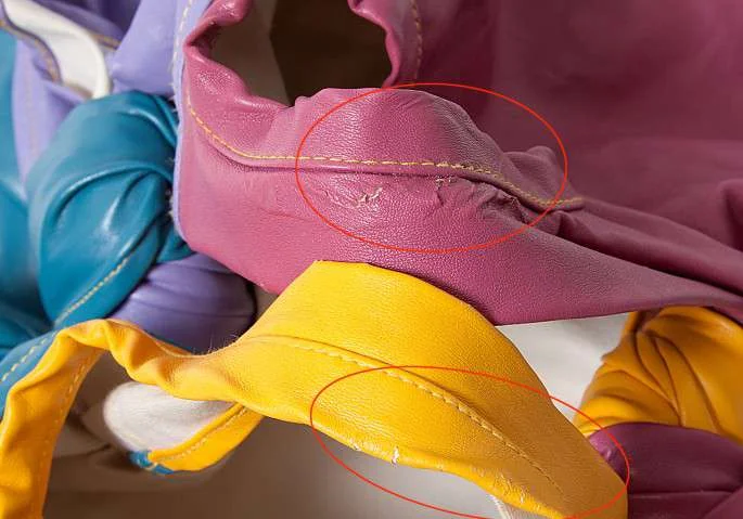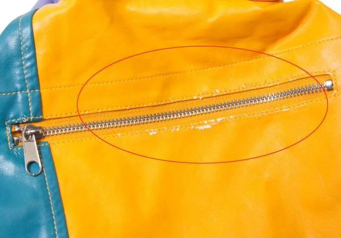 持ち手部分に表面の剥がれが有ります。(写真参照) 内側に小さなシミが有ります。