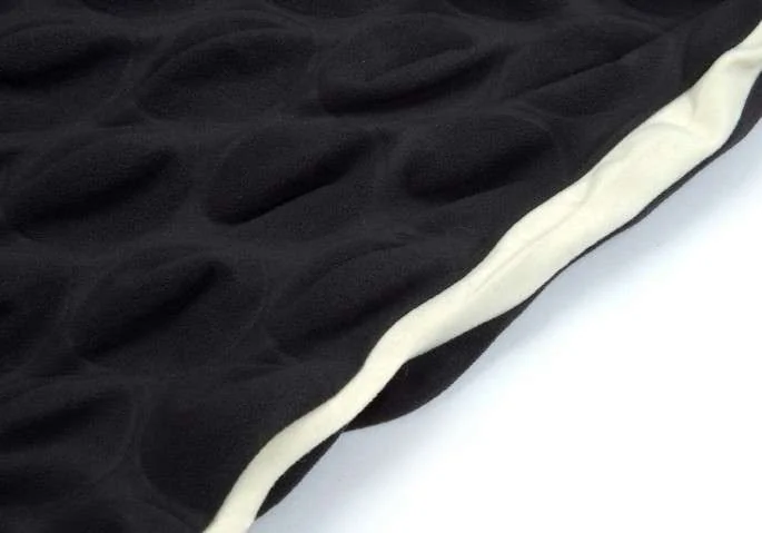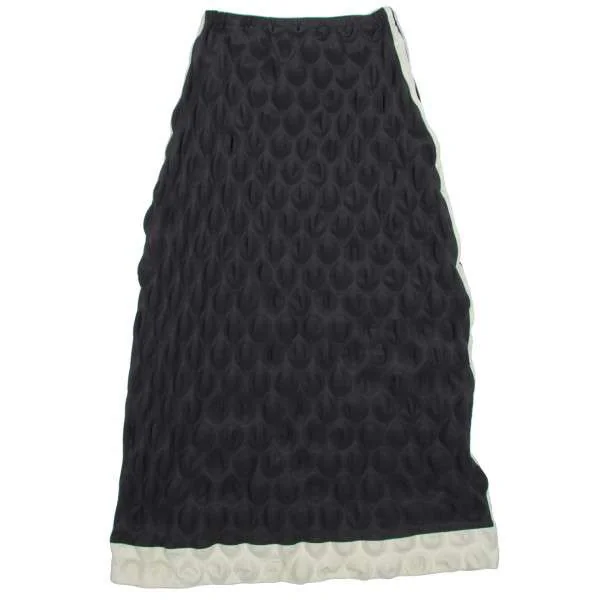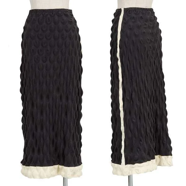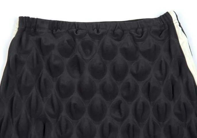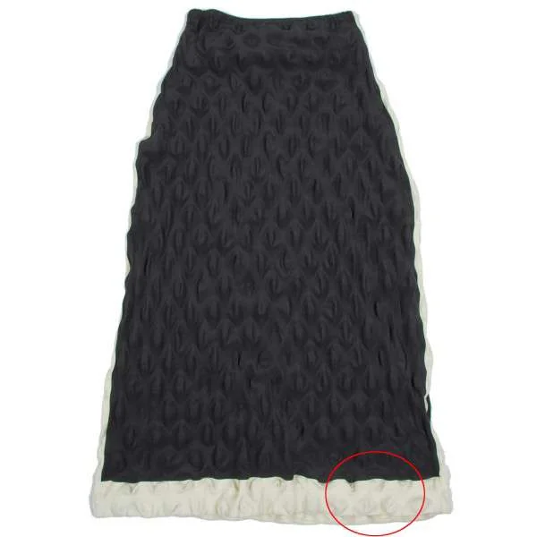 イッセイミヤケISSEY MIYAKE ナイロンストレッチバイカラー球体エンボス加工スカート チャコール生成り1