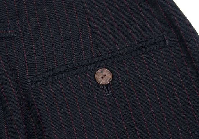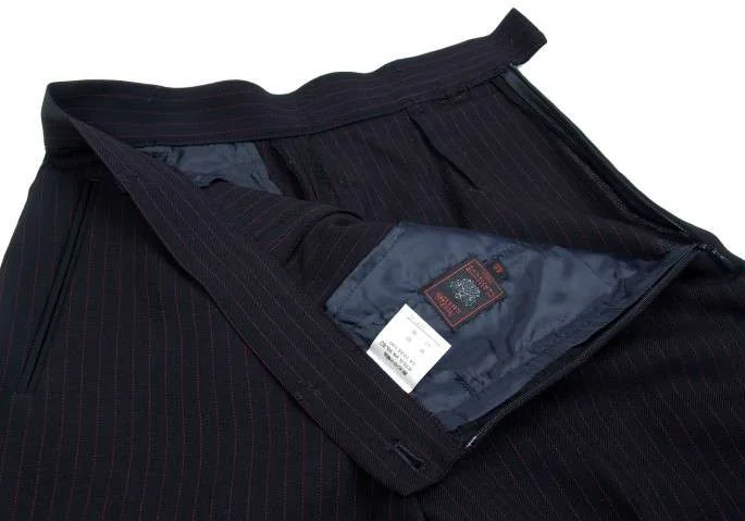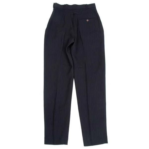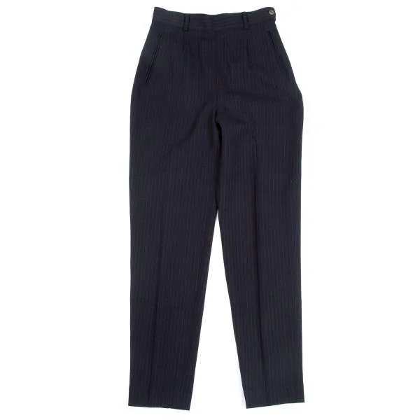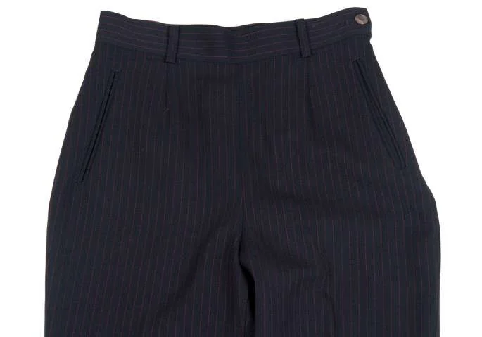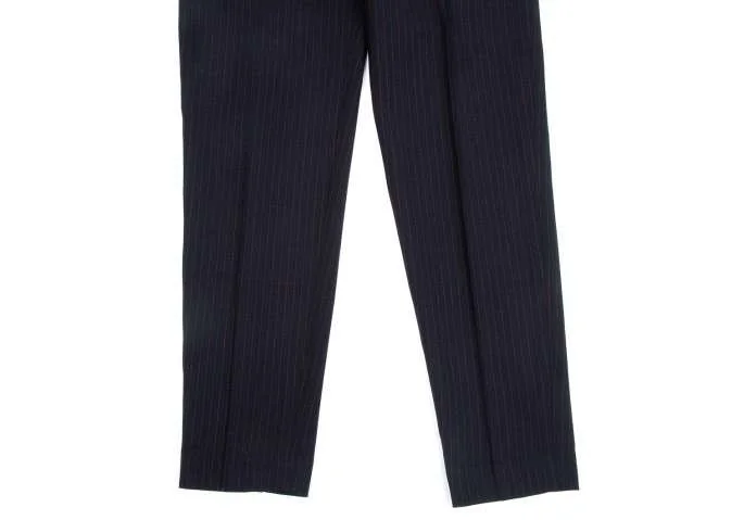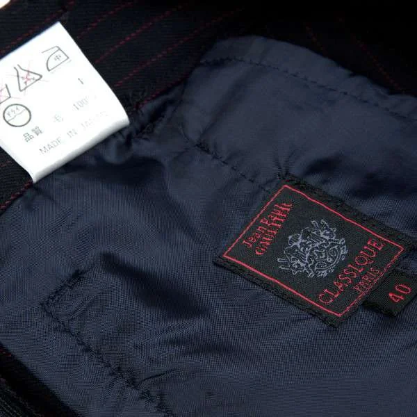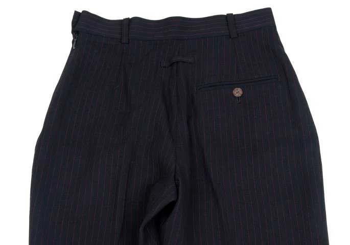ジャンポールゴルチエ クラシックJean Paul GAULTIER CLASSIQUE ウールギャバストライプデザインタックパンツ 濃紺赤40