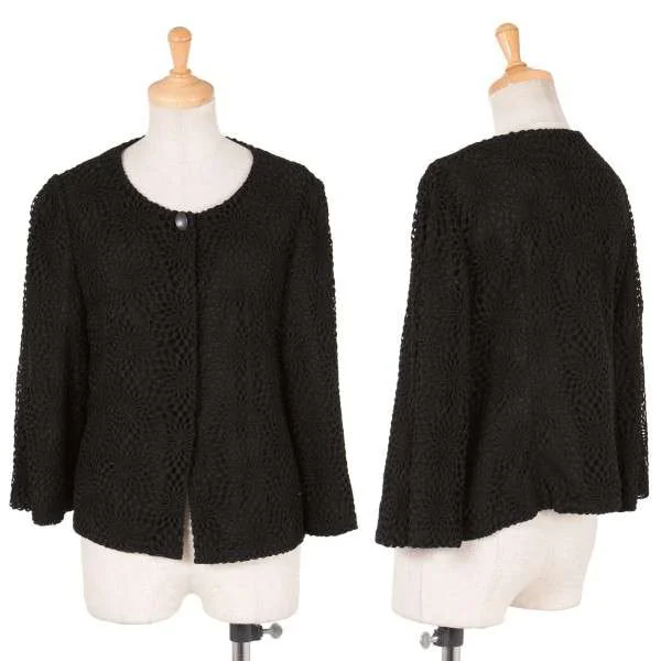 シビラSybilla デザインレイヤードノーカラージャケット 黒L