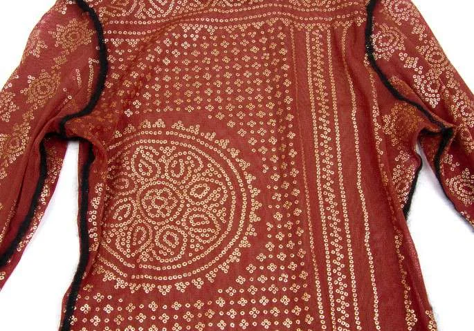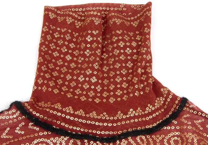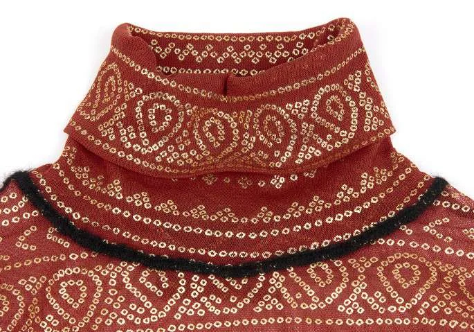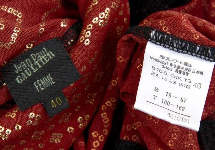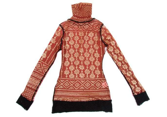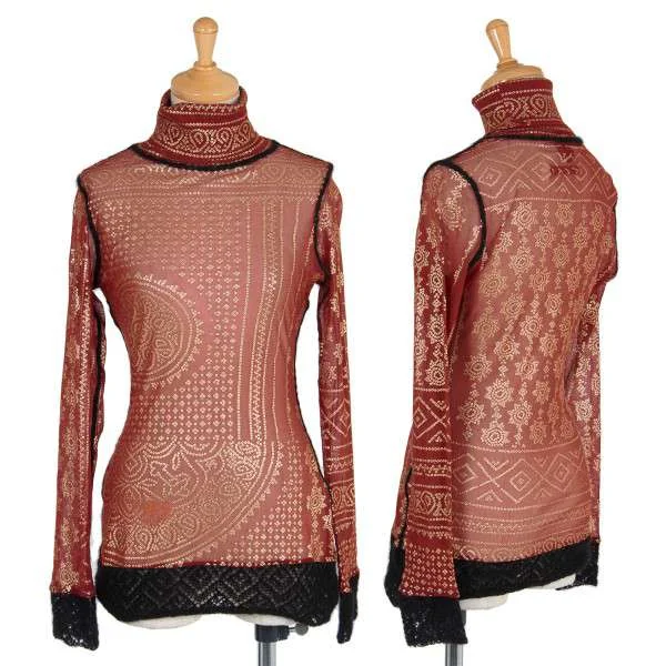 ジャンポールゴルチエ ファムJean Paul GAULTIER FEMME ハイネックパワーネットウール切替トップス レンガ赤黒40