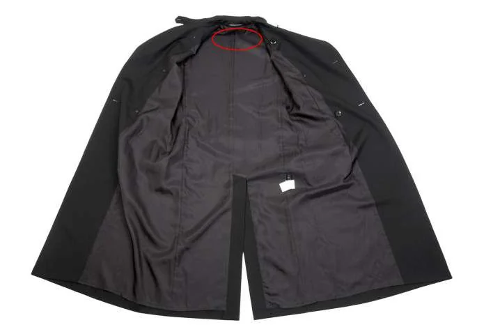 襟裏、袖口裏に薄汚れあり。首元裏地に引っ掛け、前身頃に薄汚れあり(写真参照)。その他は目立ったシミ、汚れ、ほつれ等なくいい状態です。